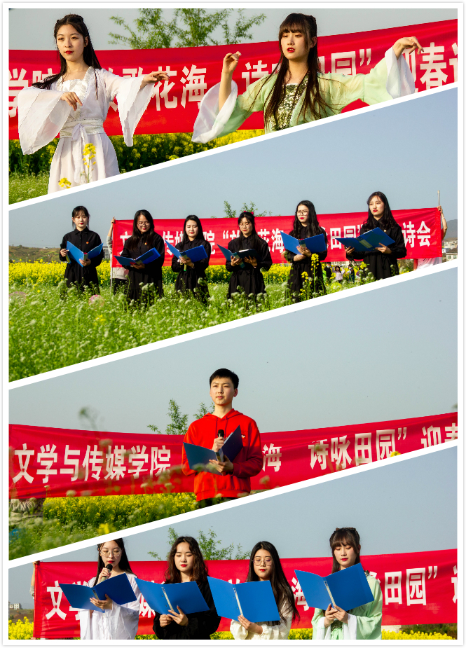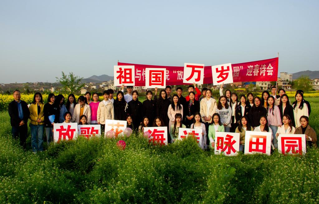 3月22日下午,公司组织员工在张滩镇黄洋河畔举办了“放歌花海.诗咏田园”迎春诗会。本次活动由影视戏剧社承办,全院48名员工报名参加了朗诵会。公司党总支副书记杨海蓉、郑继猛教授、辅导员邹棠华参加诗会。