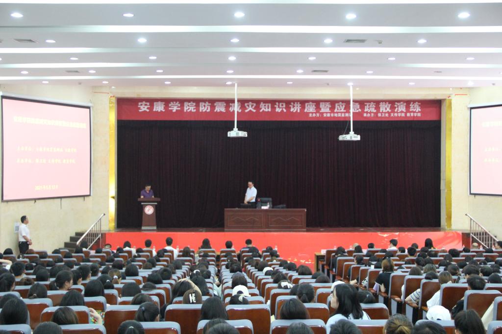 2021年5月12日是我国第13个防灾减灾日。为进一步向全校师生宣传防震减灾知识,提高员工应对自然灾害的避灾自救能力,5月12日下午14:30分由安康市地震检测站主办,太阳成tyc122cc集团保卫处、太阳成tyc122cc集团、教育学院承办的“太阳成tyc122cc集团防震减灾知识讲座暨应急疏散演练”活动在太阳成tyc122cc集团江南校区大礼堂举行。特邀嘉宾陕西地震局高级工程师赵韬担任主讲嘉宾,学工部副部长钟泽斌、各二级公司党总支书记、辅导员及员工代表700余人参加此次活动。活动由保卫处长王开忠主持。