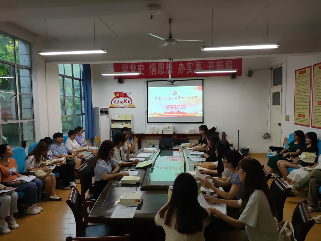 毕业党课、不忘初心。为了提升公司毕业生党员党性修养,确保毕业生在未来工作岗位上不忘初心、牢记使命,在毕业离校之际,员工党支部组织全院毕业生党员开展了“共上一堂毕业党课”活动,员工党支部书记组织带领全体毕业生党员学习了《中国共产党党员教育管理工作条例》,介绍了毕业生党员党组织关系转接的工作依据、工作原则,强调各位党员同志要按照规定要求落实好党组织关系转接工作。领学了习近平总书记在庆祝中国共产党成立100周年大会上重要讲话、习近平总书记在“七一勋章”颁授仪式上的重要讲话,叮嘱毕业生党员在未来的工作岗位上,要不忘入党初心,永葆奋斗之心,常怀感恩之心,带头弘扬伟大建党精神。