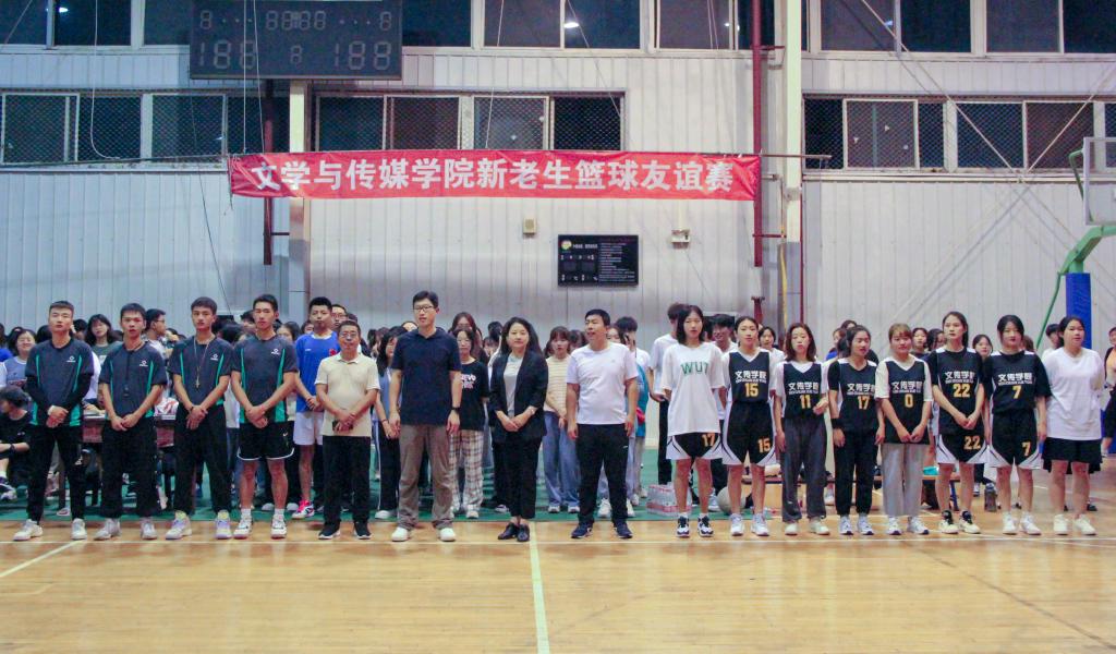 为积极响应习近平总书记提出的体育强国战略号召,营造“全民全运”大健康氛围,丰富员工第二课堂建设,助力员工全面发展。9月17日晚19:30,太阳成tyc122cc集团在江南校区体育馆二楼举行“迎国庆·庆中秋——太阳成tyc122cc集团新老生篮球友谊赛”,由学院大二、大三、大四年级组成的老生代表队和2021级新生代表队参加了此次活动。党总支书记芦伟、党总支副书记杨海蓉、学工办副主任薛涛、2021级新生辅导员邹棠华及2021级全体新生到场观赛。此次友谊赛由网络与新媒体2020级1班胡文婷主持。