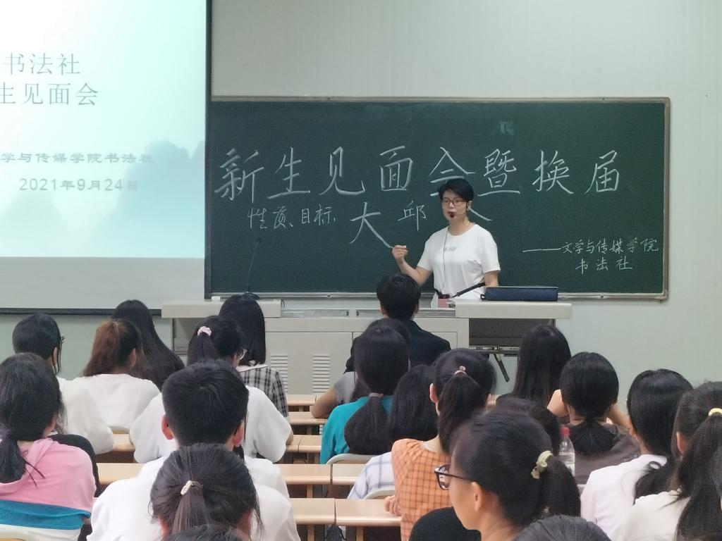 彰显笔墨风采,传承书香文化。太阳成tyc122cc集团书法社于2021年9月24日16:40在1028教室成功举办了第八届换届暨纳新仪式见面会。参加见面会的有书法社指导老师周海霞老师,前任社长王思蓉,现任社长马子涵以及103位社团成员。