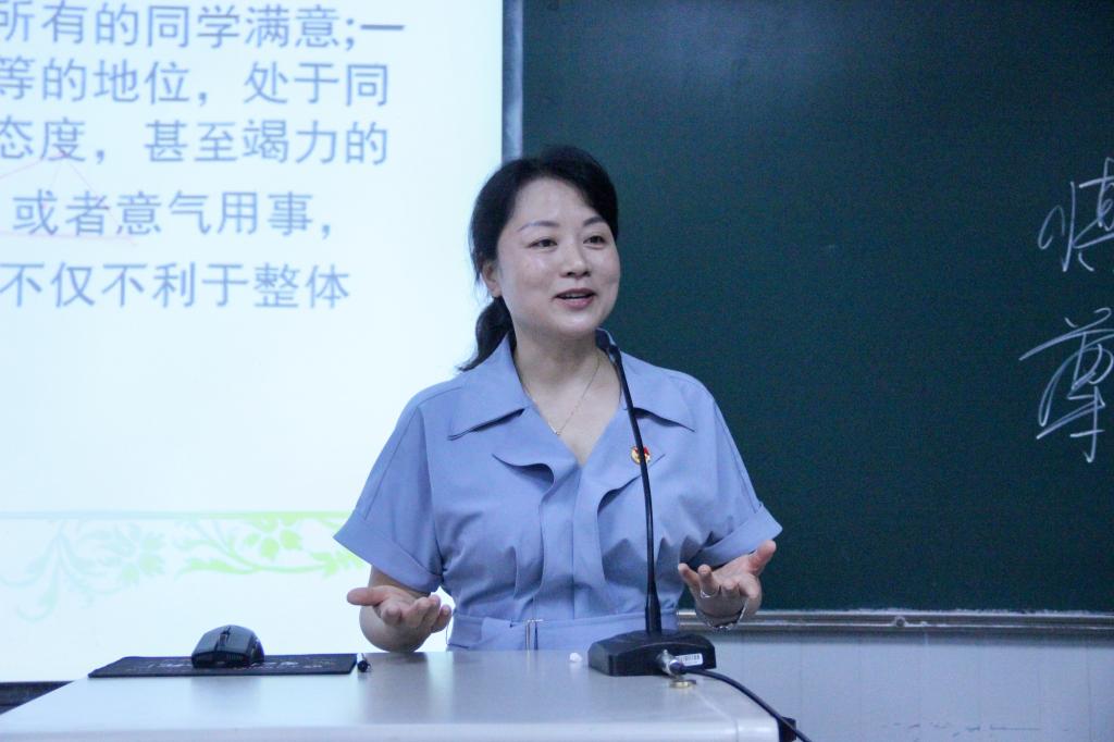接着,杨海蓉做了员工干部能力素养专题培训,分别从员工干部形象礼仪、道德素质、大局意识、沟通表达能力等方面向在场的员工干部提出要求,希望员工干部用高标准严格约束自己,增强责任意识、团队意识、创新意识、服务意识,处理好学业和工作的关系。