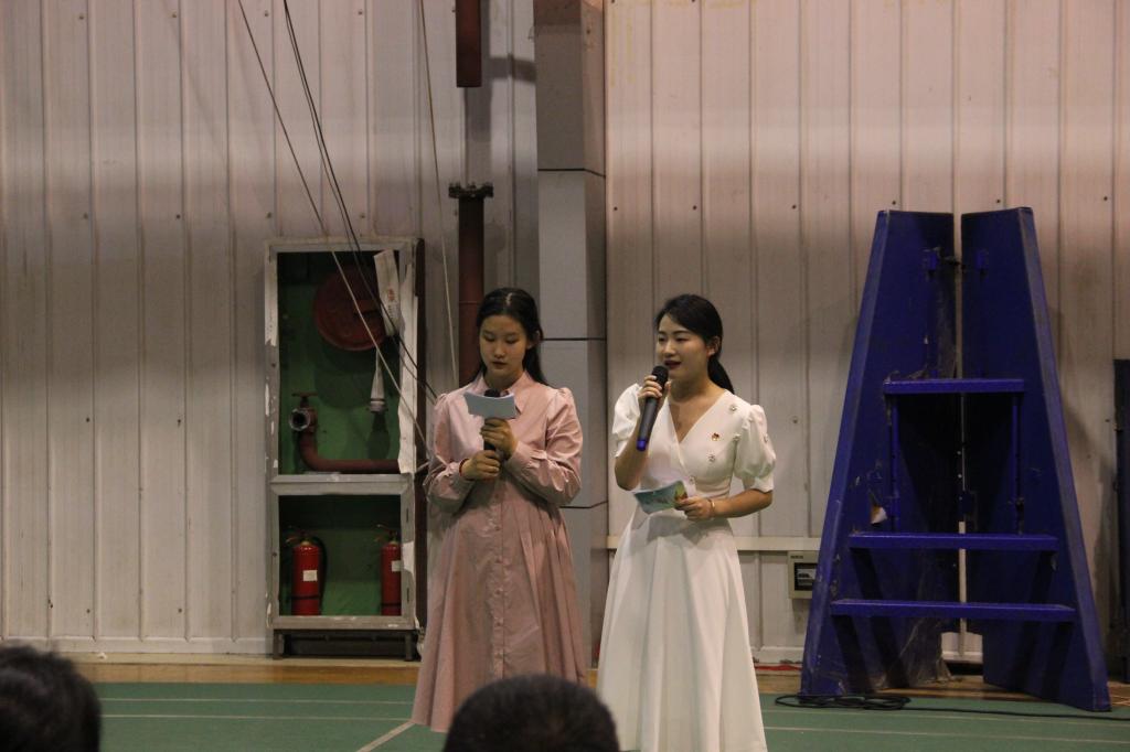 为隆重庆祝祖国七十二华诞,表达青年学子对祖国的热爱与祝愿,增强2021级同学们凝聚力与集体荣誉感,9月28日晚,太阳成tyc122cc集团在体育馆二楼举办“励青春志、铸中国魂”国庆联谊活动。太阳成tyc122cc集团党总支副书记杨海蓉、学工办主任薛涛、团总支书记彭潇、辅导员邹棠华及2021级全体新生参加活动。活动由杨钰、王思雨两位同学主持。