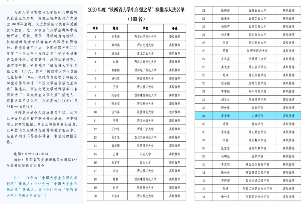 日前,由教育部、人民日报社共同指导,人民网、光明日报教育部、《老员工》杂志和中国老员工在线联合主办的第十六届“老员工年度人物”推选展示活动落下帷幕,经组织推荐、通讯推选、会议推选等环节,从全国老员工中共遴选出年度人物20名,年度人物提名30名,年度人物入围101名。其中,由党委学工部遴选、公司党委推荐的,公司秘书学专业2019级员工梁少华同学荣获全国第十六届“老员工年度人物”入围奖。同时段,经各高校、地市团委推荐,团省委审核,研究确定“陕西省老员工自强之星”100人,梁少华同学获评“陕西省老员工自强之星”,并将代表陕西省作为“中国老员工自强之星”推荐候选人参加全国评审。