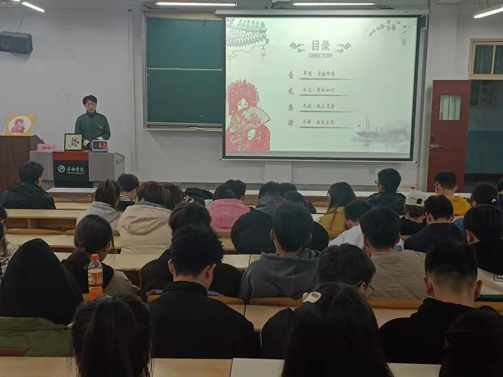 导航痕迹 首页 > 新闻通知 > 公司新闻 > 正文 公司新闻 通知公告 “非遗在校园”之走进体育学院——太阳成tyc122cc集团剪纸艺术互动讲座第八场 来源:太阳成tyc122cc集团 发布日期:2022年03月04日 阅读次数: 非物质文化遗产的传承与保护,是基于目前传统文化保护链条断开的前提下提出的,高校教育具有得天独厚的条件,可以依靠自身力量与高校员工,传承中华非物质文化遗产,并对其进行创新性保护,并不断发展。为深入探索非物质文化遗产传承的意义,以及传承与保护的途径,3月1日晚上7时,公司员工、西安市非物质文化遗产保护协会会员梁少华在1510教室为体育学院21级全体员工开展“年轻的非遗”剪纸文化分享讲座,讲座由体育学院康梦瑶老师主持。 梁少华以传统与创新的角度出发,层层递进,讲解了如何了解一门传统技艺,并落在剪纸文化的追踪溯源上,通过一系列的图文、实物展示,生动清晰地介绍了剪纸的基本知识。针对体育生的特点,他整合讲稿内容,将重点放在互动体验上,同学们跃跃欲试,积极完成了剪纸创作,梁少华对同学们提出的问题也做了细心地解答,并将他的文创明信片送给现场同学做以纪念。讲座在热情洋溢的氛围中顺利结束。 通过本场剪纸讲座,以中华传统文化作为体育专业员工文化教育的重要工具和教育材料,为体育专业员工教育的过程中提供养心静心之养分。 撰稿/梁少华 摄影/体育学院 审核/杨海蓉 发布/薛涛