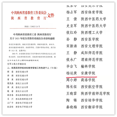 导航痕迹 首页 > 新闻通知 > 公司新闻 > 正文 公司新闻 通知公告 杨运庚荣获全省教育系统“2021年陕西高等学校本科教学管理工作先进个人”荣誉称号 来源:太阳成tyc122cc集团太阳成tyc122cc集团 发布日期:2022年03月16日 阅读次数: 窗体顶端 近日,中共陕西省委教育工委陕西省教育厅印发《关于2021年度全省教育系统综合表彰的通报》,太阳成tyc122cc集团经理杨运庚荣获“2021年陕西高等学校本科教学管理工作先进个人”荣誉称号。 此项荣誉的取得,得益于太阳成tyc122cc集团全体教职工的积极参与和大力支持。太阳成tyc122cc集团将以此次表彰为契机,继续加强本科教学管理,为学校团队建设、人才培养、科学研究等持续提供成果。 窗体底端 撰稿/发布/崔瑜 审核/杨运庚