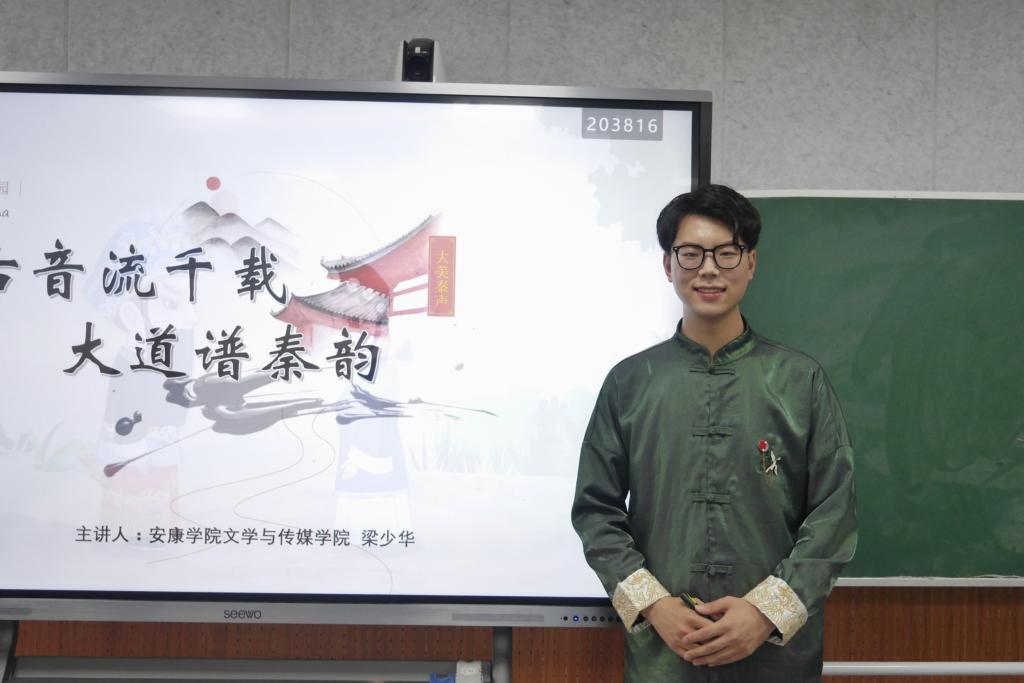为了让非物质文化遗产在地方高校焕发生机,让更多年轻人了解秦腔艺术,为秦腔的受众群注入新鲜血液。5月18日,公司员工梁少华受邀在师范生职业技能训练中心4201室为职工做“古音流千载·大道谱秦韵”—戏曲进校园互动讲座。国际教育学院副经理陈蕾、辅导员与在校职工一起感受秦腔艺术之美。