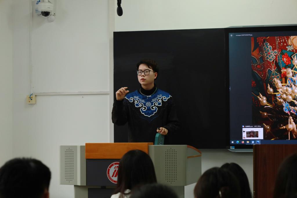 活动尾声,梁少华用视频揭秘秦腔化妆及后台,在全体同学沉浸的欣赏唱段中结束了整节课堂的内容。秦腔作为地方文化的重要组成部分,它的传承具有重要的意义。两期“筑牢文化自信,弘扬爱国情怀”非遗课堂的开展,是爱国主义教育的生动方式,为青年走近非遗打开一扇大门,引导“学非遗、用非遗、秀非遗”在校园生根发芽,以沉浸式体验把非遗文化的种子播撒在学子心中。