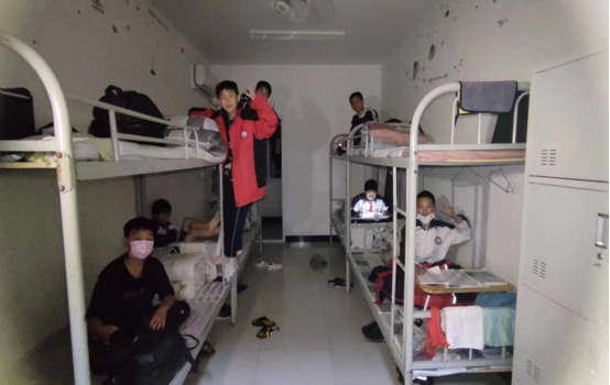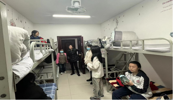 (图四:在实习班级的男生宿舍看望员工)
