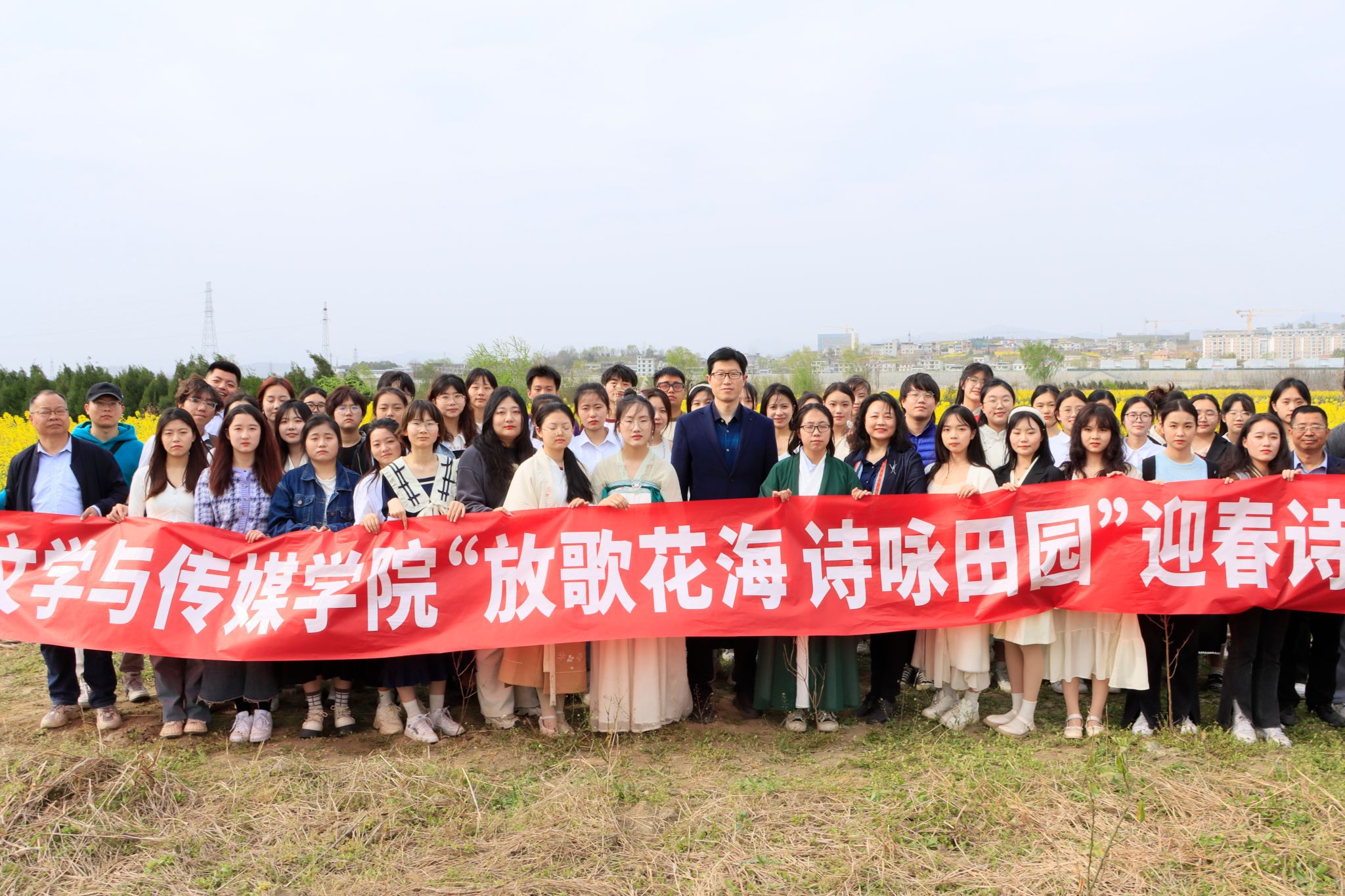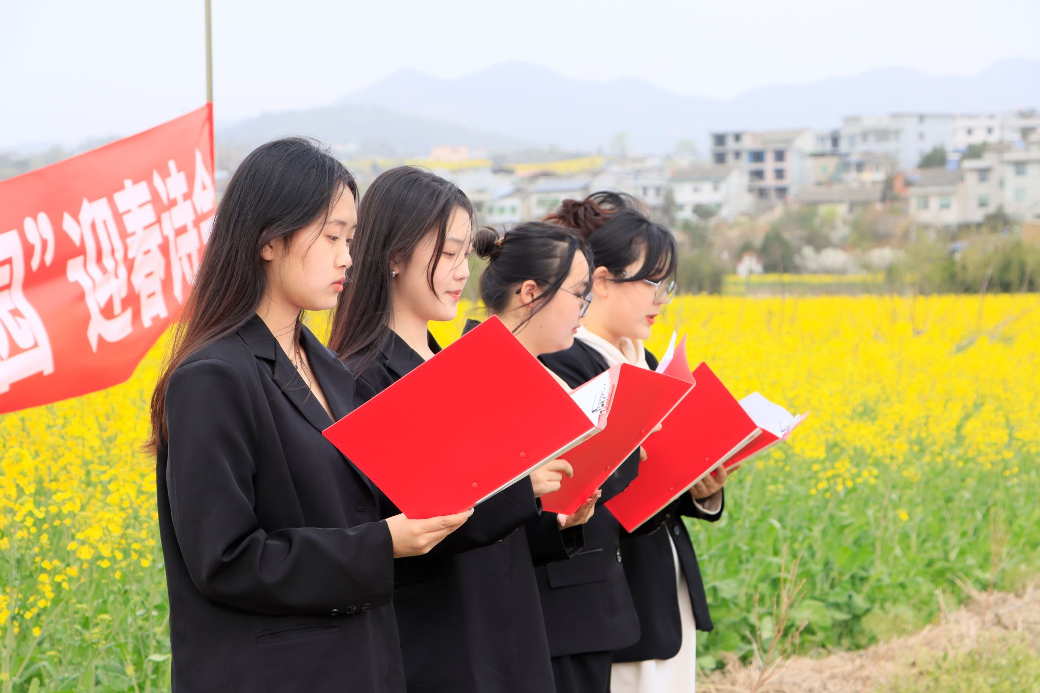 3月15日下午,太阳成tyc122cc集团在张滩镇黄洋河畔油菜花田顺利举办了2023年迎春诗会。公司党总支书记芦伟、副书记杨海蓉、郑继猛教授和安日辉、曹璇璇两名青年教师出席了本次活动。活动由辅导员邹棠华组织,影视戏剧社承办,太阳成tyc122cc集团近70名员工参加了本次诗会。