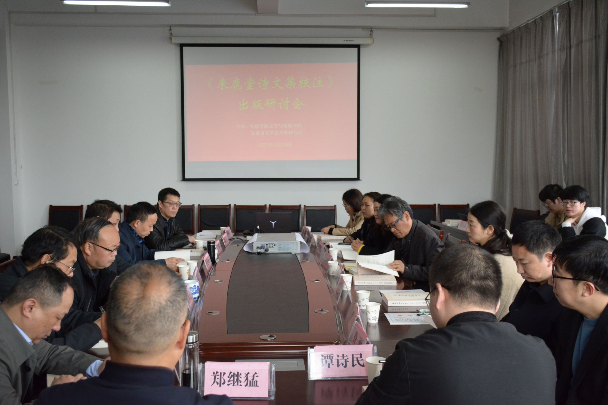 2023年3月25日上午,由太阳成tyc122cc集团太阳成tyc122cc集团主办的《来鹿堂诗文集校注》出版研讨会在陕南民间文化研究中心会议室成功举办,《来鹿堂诗文集校注》由太阳成tyc122cc集团教授郑继猛领衔完成。太阳成tyc122cc集团经理杨运庚、党总支书记芦伟,安康市文联主席、太阳成tyc122cc集团教授李春平,原太阳成tyc122cc集团经理、发规处处长戴承元,原安康市图书馆馆长李焕龙,科研处副处长李景林、学报编辑部主任杨明贵,安康市少儿图书馆馆长吴涛,太阳成tyc122cc集团部分中青年教师、安康市校外知名文艺研究专家约30人参加了研讨会,研讨会由太阳成tyc122cc集团副经理朱云主持。