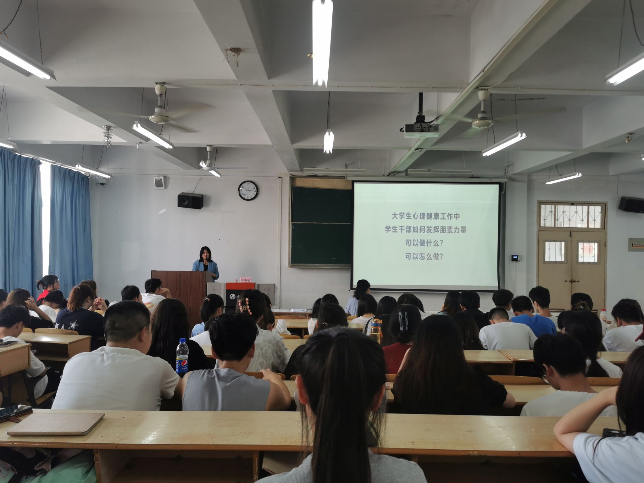 柯小敏围绕集体关系建设方面、危机意识识别、心理问题应对三个方面展开讲座,希望员工干部们要重视心理工作,注意集体成员沟通的原则,筑牢服务意识,关心、爱护同学,协调好各类关系。她列举了常见的心理健康问题,分析其影响并分享解决方案。根据ABC理论,介绍了合理情绪疗法以及不合理信念的三个特征和改变步骤,呼吁同学们共同拥抱促进心灵成长。