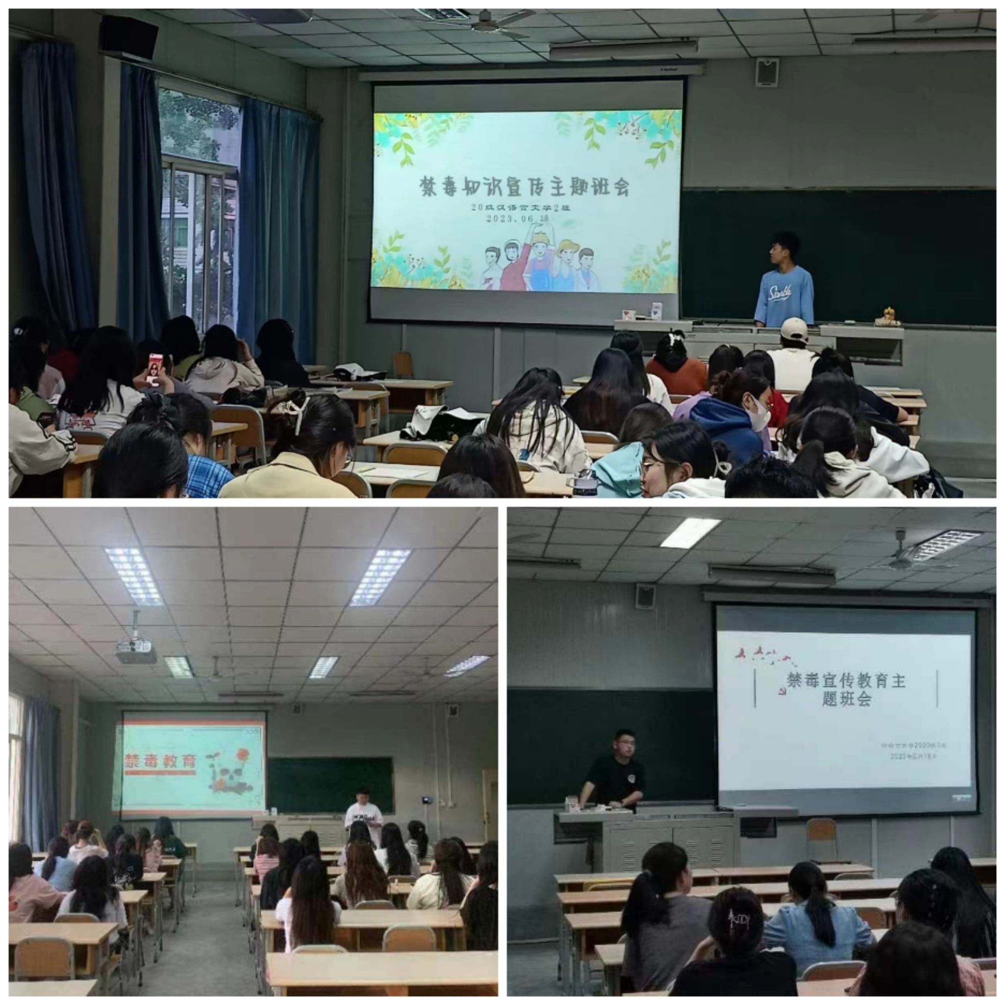 导航痕迹 首页 > 新闻通知 > 公司新闻 > 正文 公司新闻 通知公告 公司组织召开禁毒知识宣传教育主题班会 来源:太阳成tyc122cc集团 发布日期:2023年06月21日 阅读次数: 临近国际禁毒日,为进一步加强学校禁毒宣传教育工作,树立员工防毒意识,提高员工自我保护能力,太阳成tyc122cc集团于6月19日组织各专业班级召开禁毒知识宣传教育主题班会。 班会上,各班班长向班级同学详细讲解了国家法律对于毒品“零容忍”的坚决态度,并通过毒品传播的真实案例为同学们普及防范毒品知识。会后,同学们纷纷表示,将在以后的学习生活中,主动学习毒品防范常识,共建美好校园,共享美好老员工活。 “禁绝毒品,功在当代、利在千秋”。通过此次班会,学院进一步加强了同学们识毒、防毒、拒毒意识,为构建健康无毒的校园环境奠定了坚实的基础。 撰稿/王振羽 照片/各班级 审核/杨海蓉 发布/薛涛