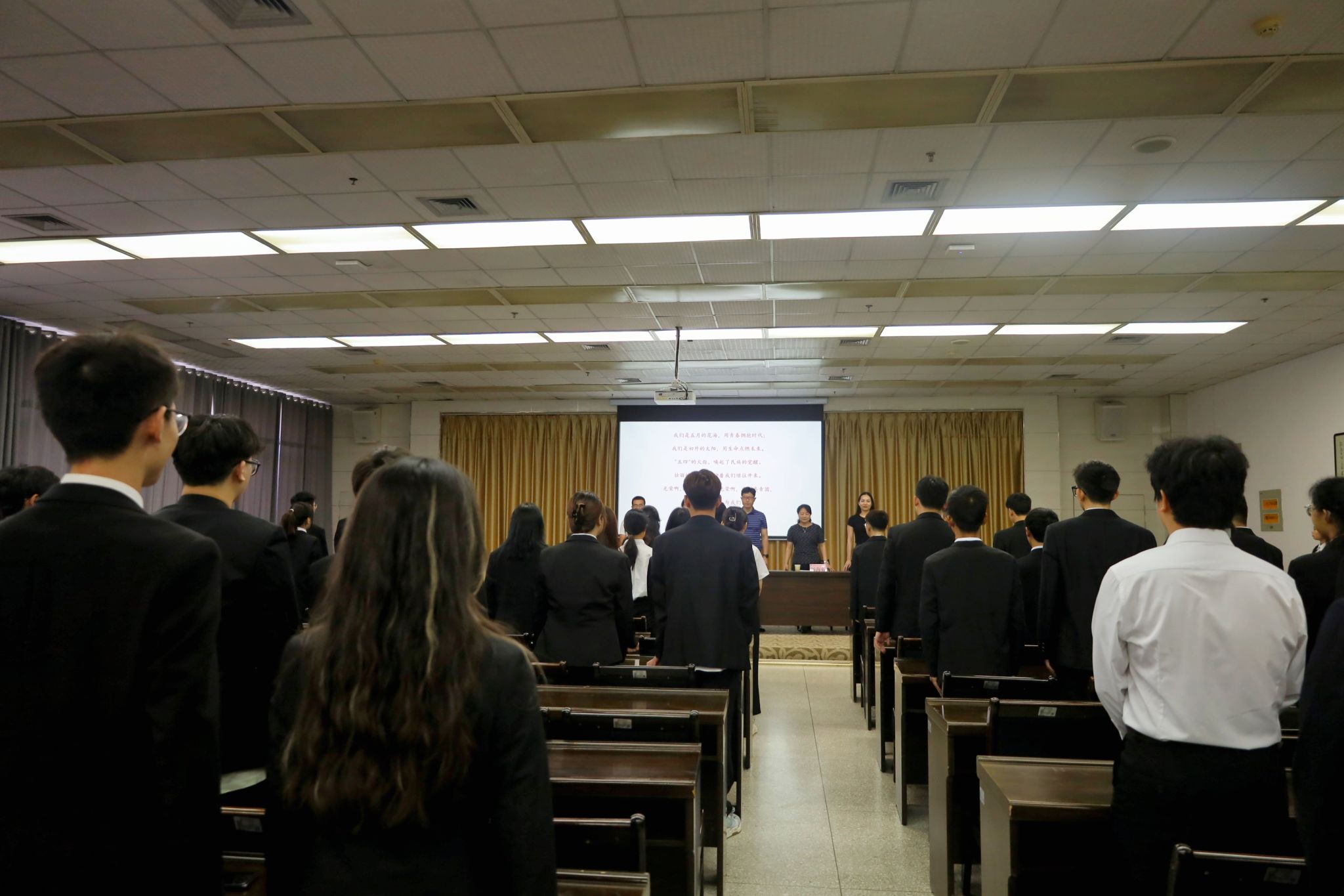 用青春拥抱时代,用生命点燃未来,大会在激情澎湃的歌声中拉开帷幕。第十七届团总支副书记胡钰梽和员工分会执行主席唐磊就上一年工作向大会做总结汇报,对支持员工分会、团总支工作老师和同学表示衷心感谢,并对新一届员工干部的工作给予殷殷期望。