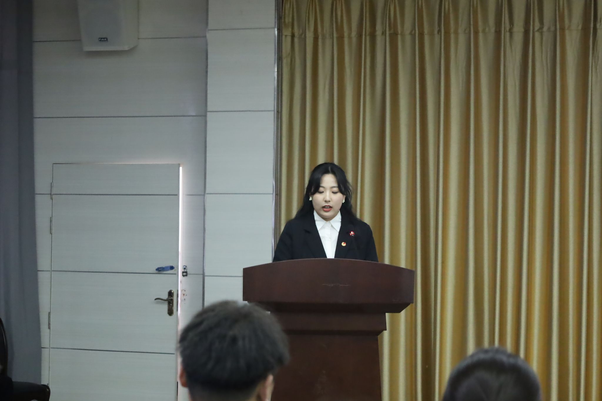 第十八届团总支副书记冀小楠、员工分会主席团成员洪诗媚作就职演讲。她们首先对上一届员工干部的培养和引导表示感谢。知不足而奋进,第十八届团总支、员工分会各部门成员将携手并进、开拓创新,工作力争更上一层楼。