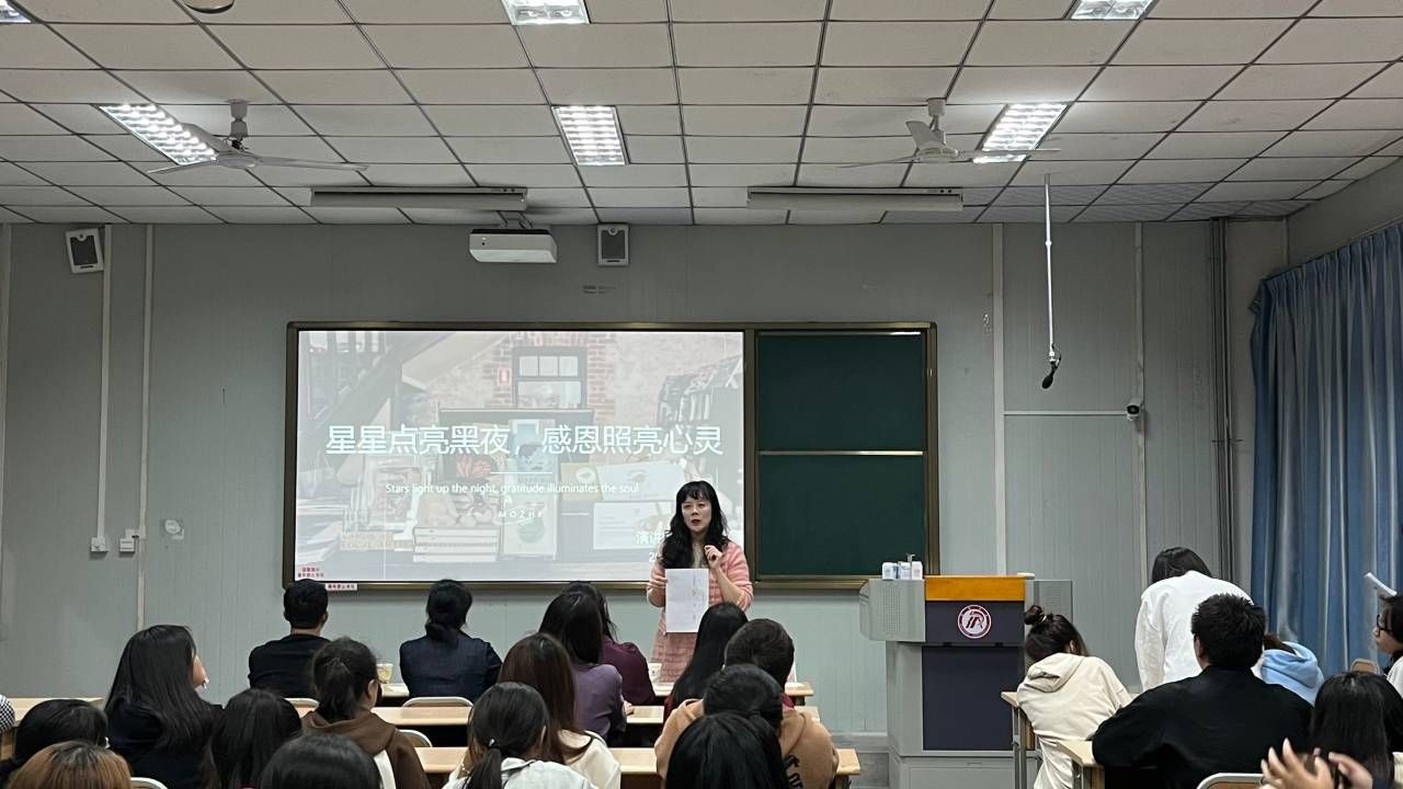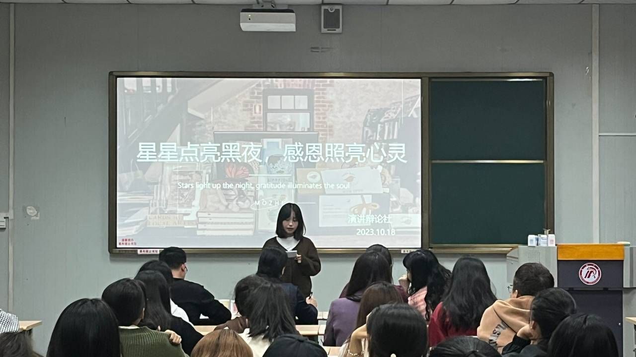 为传播正能量,传递文化价值观,让更多人通过演讲的方式展示自己的才华,教育老员工懂得感恩,学会感恩,引导老员工明确使命与责任,10月18日下午15时,太阳成tyc122cc集团“星星点亮黑夜,感恩照亮心灵”主题演讲比赛在太阳成tyc122cc集团江南校区10号楼1013教室拉开帷幕。太阳成tyc122cc集团党总支副书记杨海蓉,团总支书记彭潇、演讲辩论社指导老师余珊和新生辅导员许明担任评委,活动由陈思茹主持。