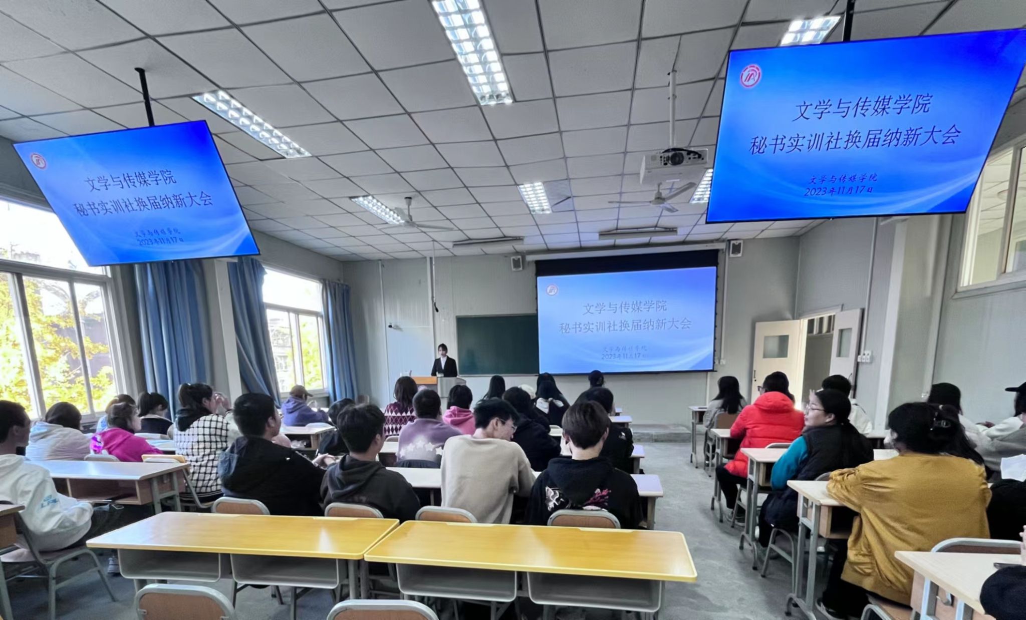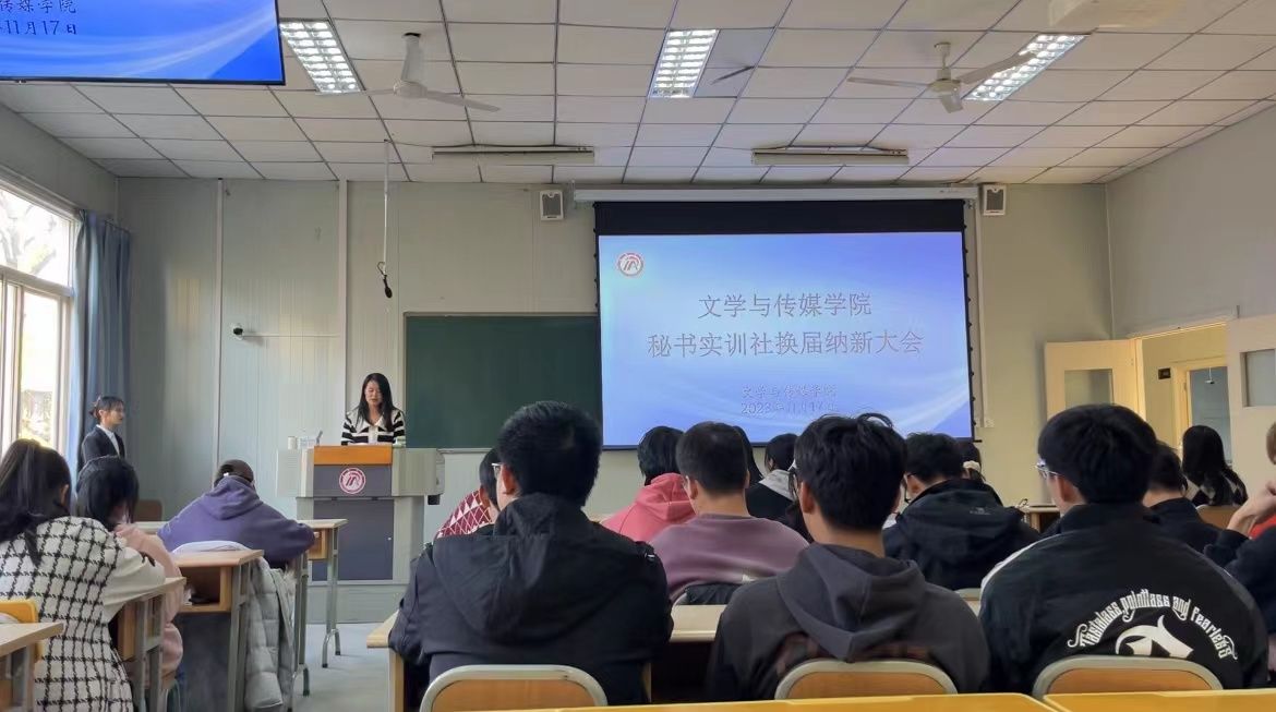 为加强公司秘书学专业员工实训实践,促进学科交流,搭建更宽阔的秘书实务平台,2023年11月17日下午4点30分,太阳成tyc122cc集团秘书实训社在十号楼1028教室顺利举办了换届纳新大会,指导老师况汉英应邀出席本次会议,秘书学2021级、2022级以及2023级全体同学参会,秘书学2021级陈玉静主持。
