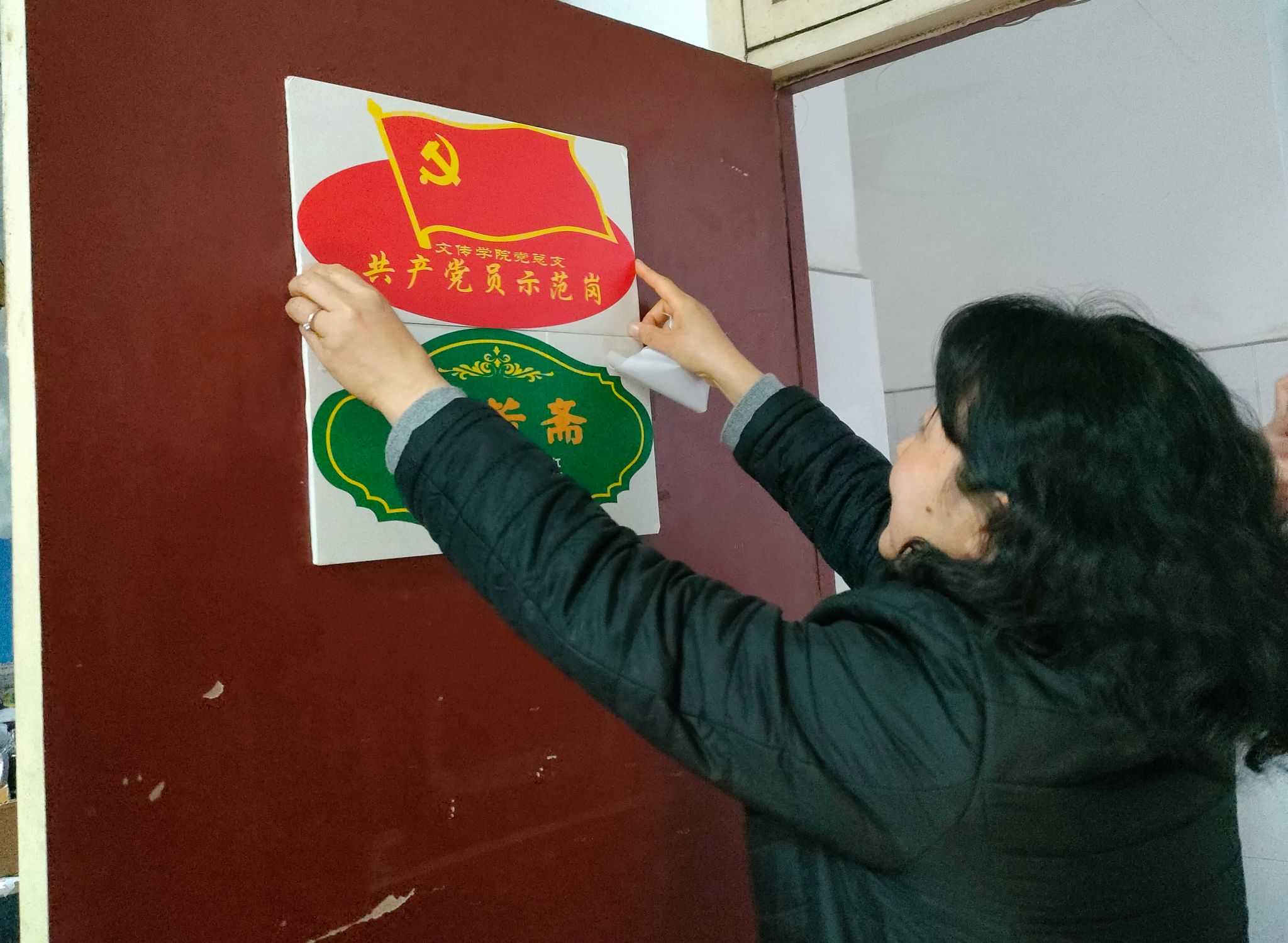 进一步推进太阳成tyc122cc集团“党建+雅室文化”的内涵建设,建设独具院系特色的“室雅书香”品牌,丰富校园文化生活,促进宿舍文化建设,2023年12月12日下午,太阳成tyc122cc集团党总支副书记杨海蓉、学工办主任薛涛和全体辅导员老师深入员工宿舍,做冬季宿舍安全检查,并为公司党员示范岗宿舍和2023级新生宿舍举行挂牌仪式。