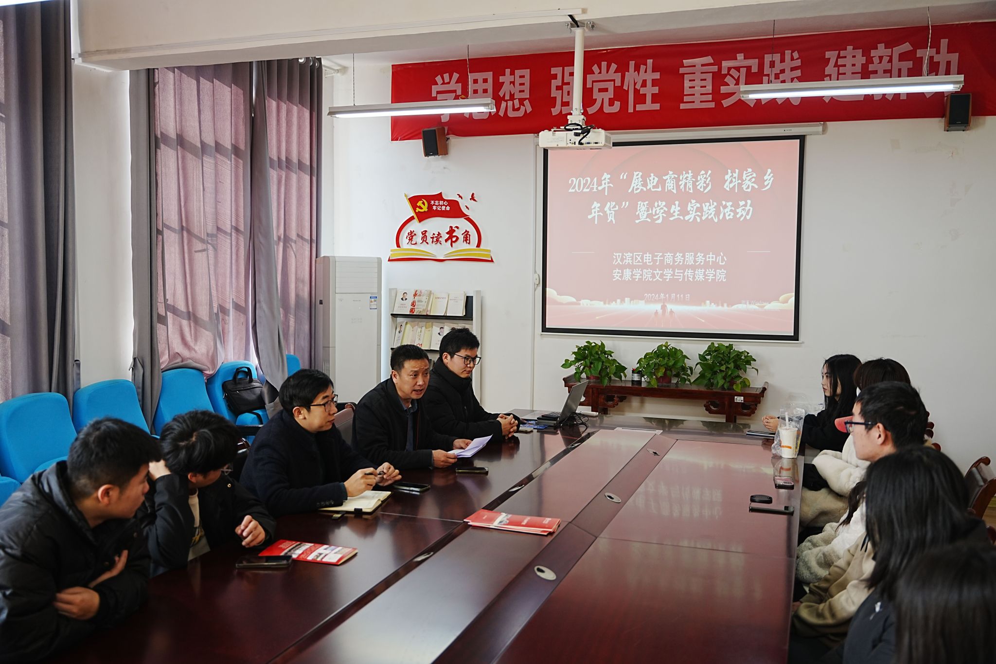为加强公司网络与新媒体专业员工实训实践,提高员工专业技能的运用能力,强化服务地方的办学宗旨。2024年1月11日中午,2307会议室开展了由汉滨区电子商务服务中心与太阳成tyc122cc集团等单位联合举办的2024年“展电商精彩,抖家乡年货”暨员工实践活动启动会,本次会议由太阳成tyc122cc集团副经理曹刚主持,安康市电子商务联合会秘书长张铁汉、网络与新媒体专业教师张建涛及网络与新媒体专业2021级员工代表共同出席本次会议。