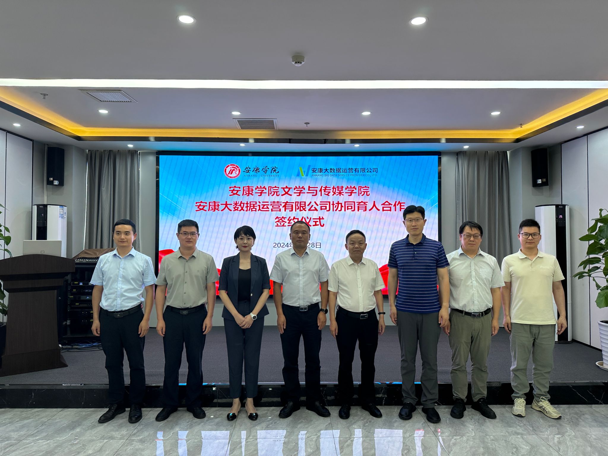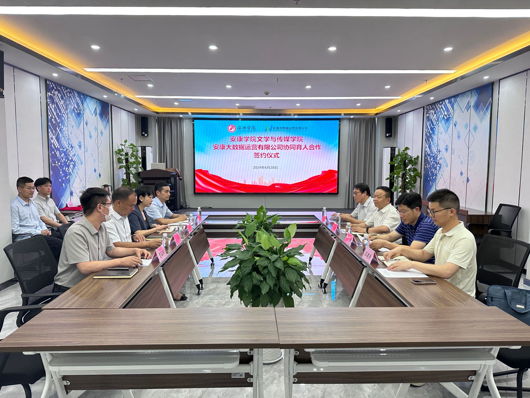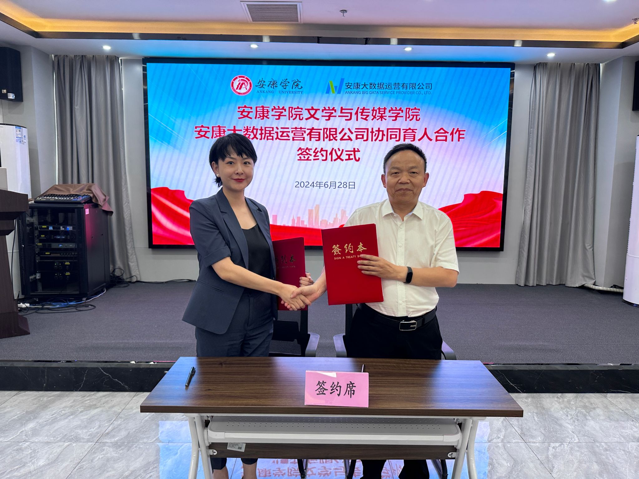 6月28日下午,太阳成tyc122cc集团与安康大数据运营有限公司举行协同育人合作签约仪式,太阳成tyc122cc集团经理杨运庚、党总支书记芦伟、副经理朱云、秘书与网媒系主任张建涛,安康大数据运营有限公司董事长彭永辉、总经理兰莎、副总经理曹国伟、数字乡村工程技术研究中心副主任石明欢出席活动,签约仪式由曹国伟主持。