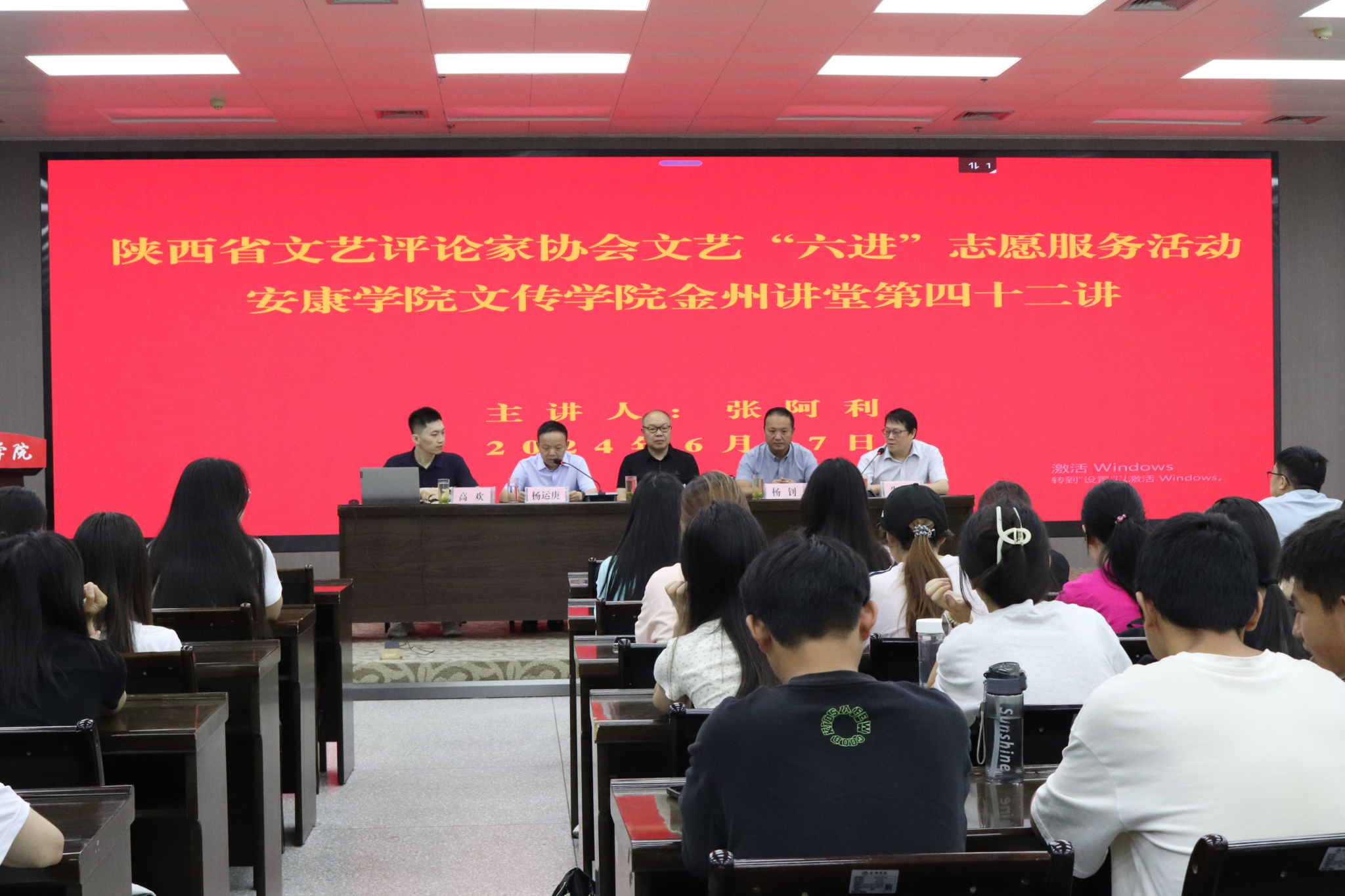 6月27日上午,陕西省文艺评论家协会文艺“六进”志愿服务活动暨太阳成tyc122cc集团“金州讲堂”第四十二讲在江南校区图书馆六楼报告厅举行,陕西省文艺评论家协会主席、西北大学电影学院经理张阿利应邀作了“西部电影四十年”的学术报告。省文艺评论家协会秘书长杨钊、太阳成tyc122cc集团经理杨运庚出席活动并致辞,活动由太阳成tyc122cc集团副经理、安康市文艺评论家协会主席朱云主持。