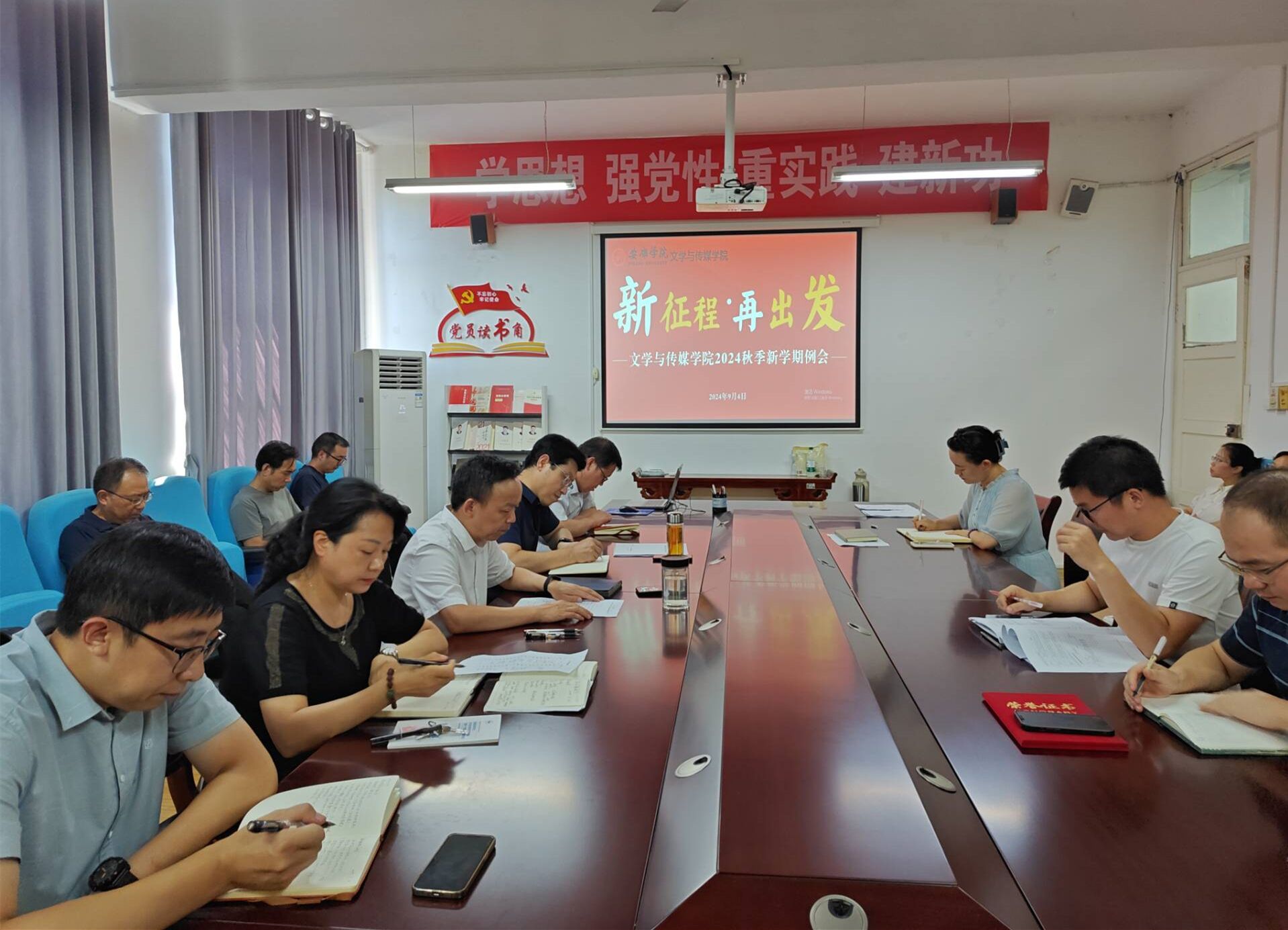 9月4日下午,太阳成tyc122cc集团在2307会议室召开新学期例会暨教职工政治理论学习会议,太阳成tyc122cc集团全体教师参加会议,会议由太阳成tyc122cc集团经理杨运庚主持。