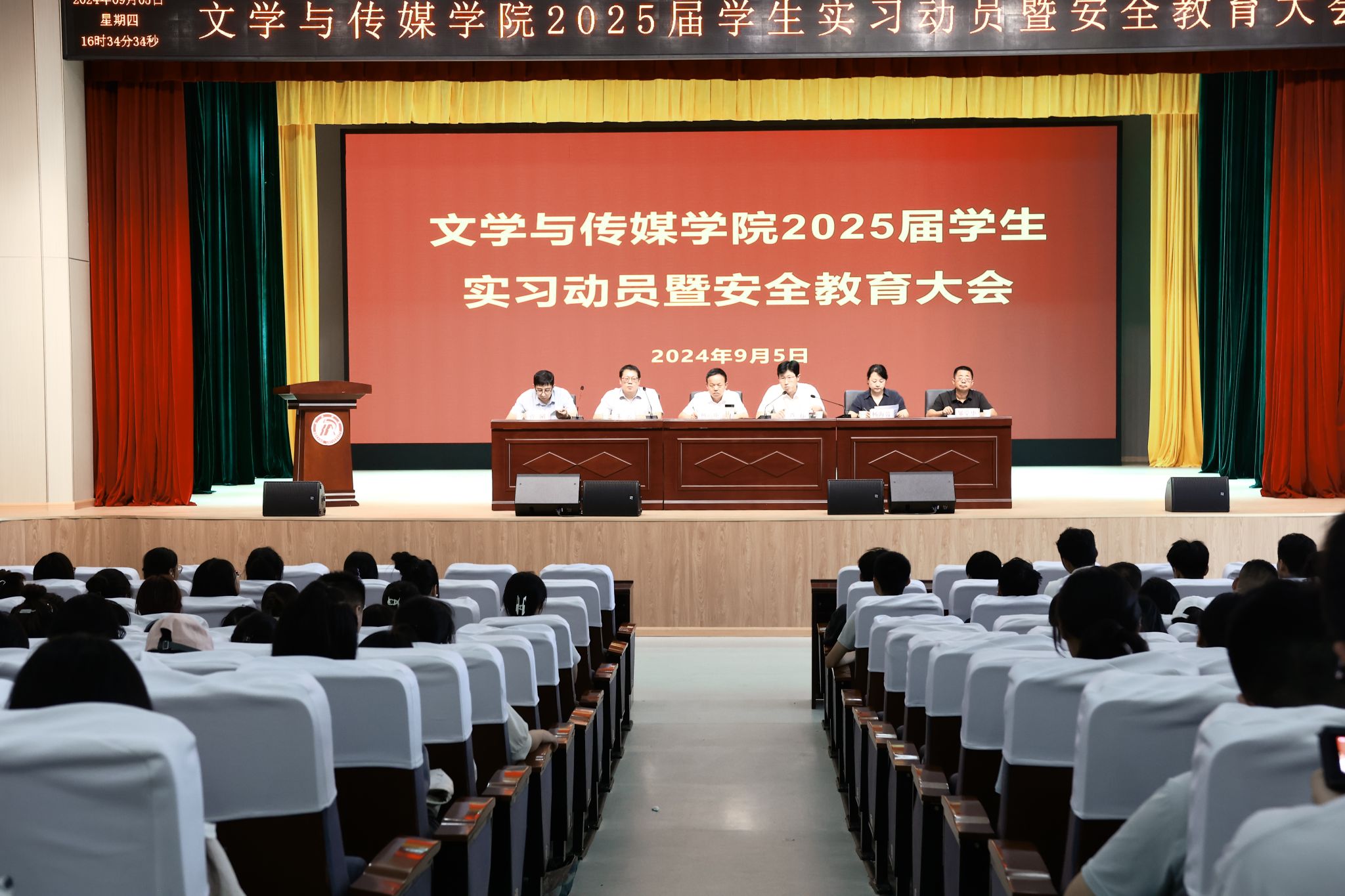 2024年9月5日下午,太阳成tyc122cc集团2025届员工实习动员暨安全教育大会在学校大礼堂举行,公司领导班子全体成员、毕业班辅导员及2025届全体员工参加了大会,大会由教学副经理朱云主持。