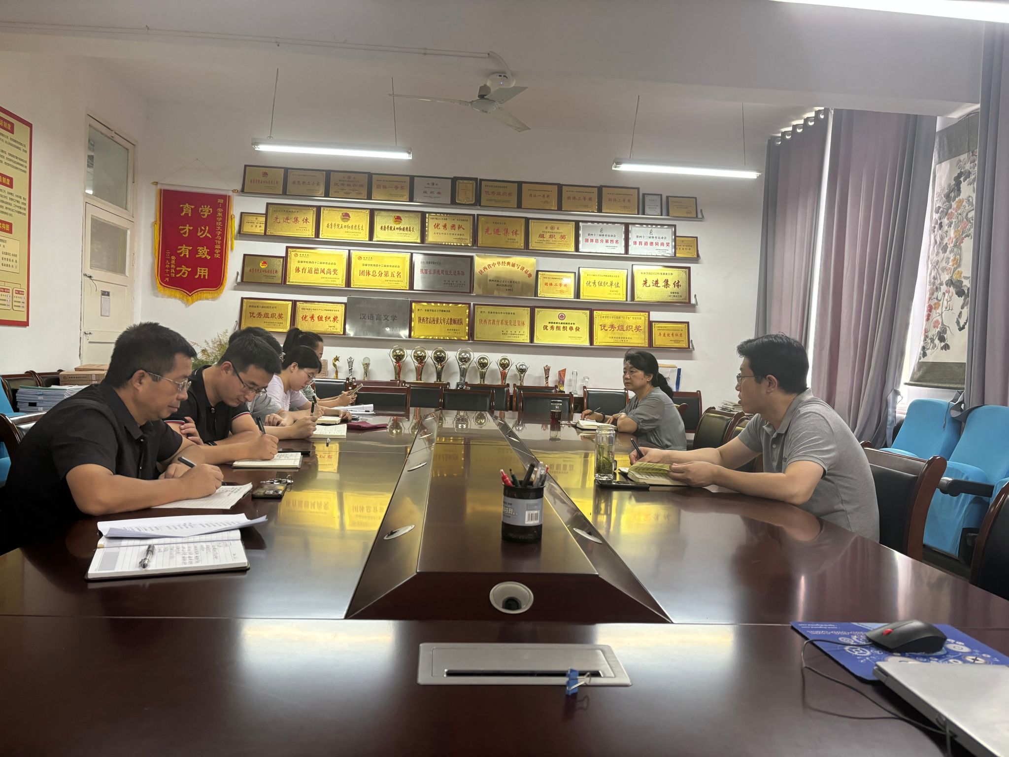 党总支副书记杨海蓉结合上半年员工管理工作做了阶段总结,希望学工团队的老师劲儿往一起使,心往一起想,增强使命感,立足本职岗位,践行中国特色的教育家精神,以教育部《高等学校辅导员职业能力标准》为指导,认真履职尽责,为学校高质量发展夯实安全稳定基础。