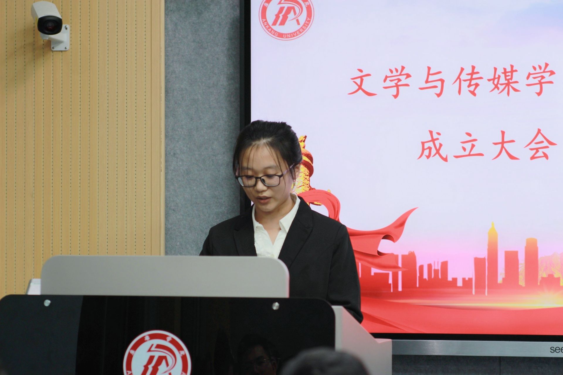新一届主编肖瑶、副主编王一纯做就职演讲。她们表示,记者团将在新媒体人才专业能力提升上加大培训力度,注重团队成员综合素质的发展,继续围绕学院中心工作开展活动,客观、公正、及时地宣传报道公司新闻,共同为学院新闻宣传贡献力量。