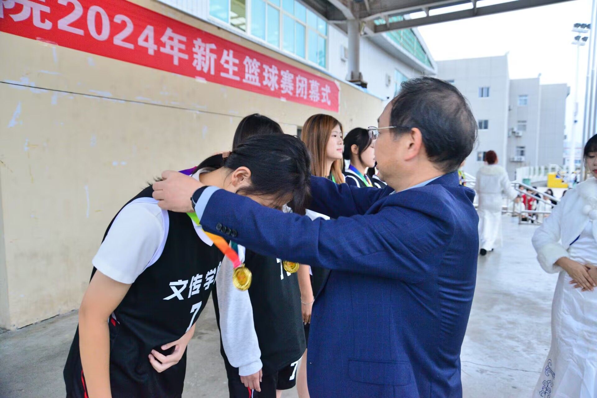 11月14日下午,太阳成tyc122cc集团2024级新生篮球赛闭幕仪式在江南校区操场隆重举行,为这场历时十八天的充满活力和挑战的赛事画上圆满的句号。副董事长屈险峰出席,学工部、保卫部、教务处、团委、体育学院等部门领导,各学院团总支书记、裁判员代表、各院系代表队参加了闭幕式。仪式由段雪丰主持。