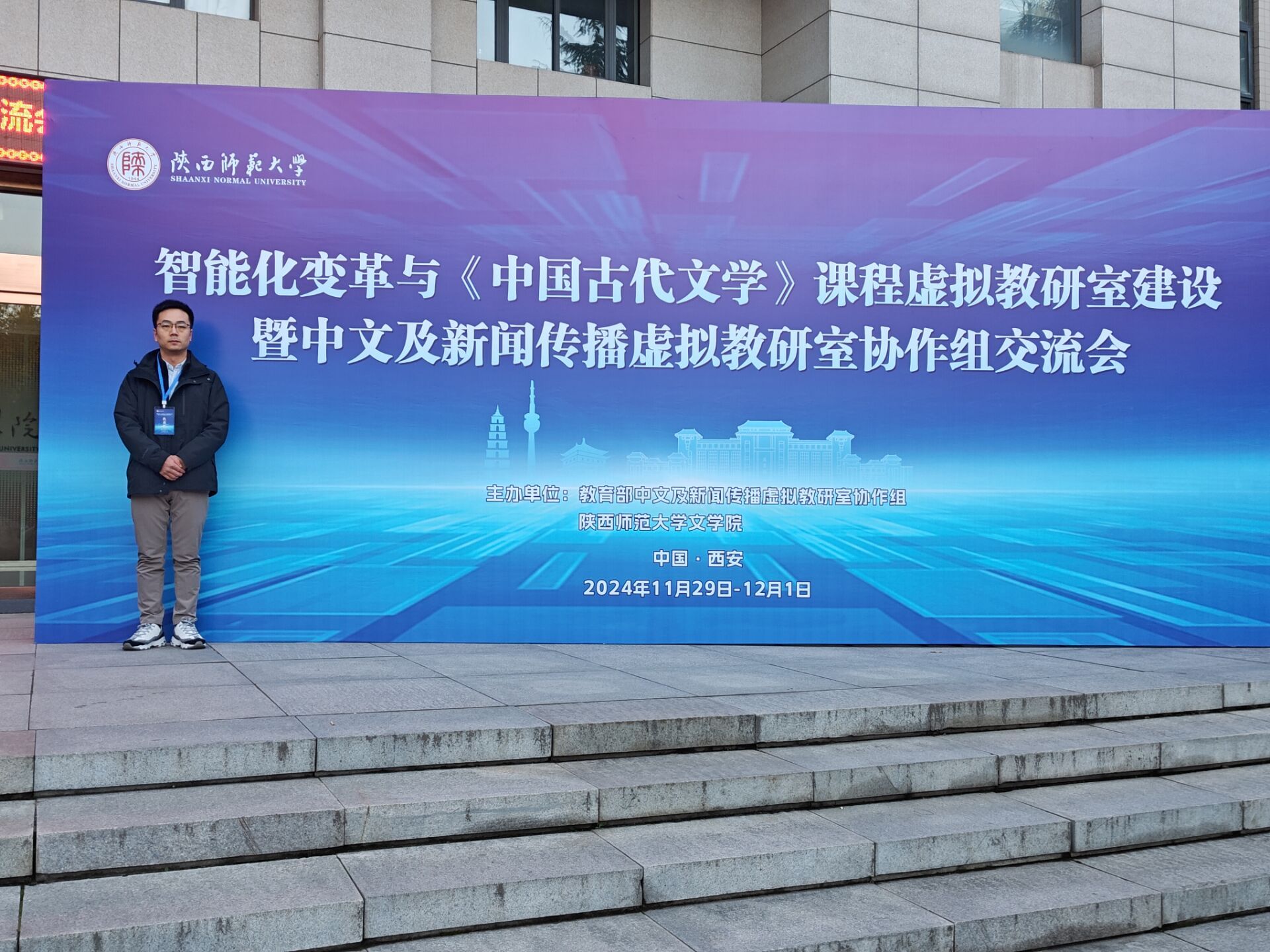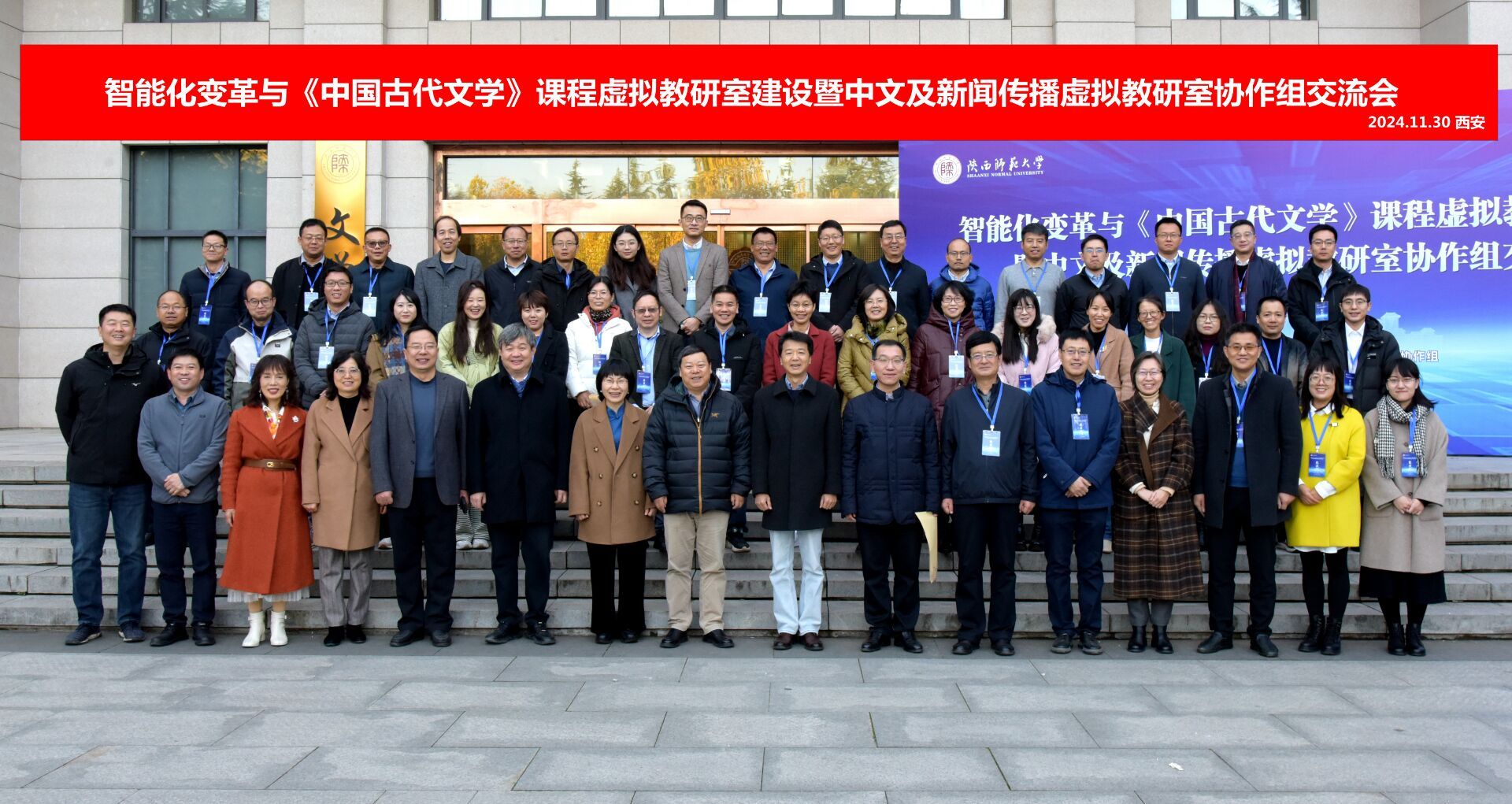 11月30日,由教育部中文及新闻传播虚拟教研室协作组和陕西师范大学文学院联合主办的“智能化变革与《中国古代文学》课程虚拟教研室建设暨中文及新闻传播虚拟教研室协作组交流会”在陕西师范大学长安校区举办。教育部中文及新闻传播类虚拟教研室协作组组长、北京师范大学文学院过常宝教授,教育部中文及新闻传播类虚拟教研室协作组联络员、北京师范大学文学院马东瑶教授,陕西师范大学文学院经理苏仲乐教授、古代文学教研室教师代表以及来自省内外32所高校的50余名专家学者出席会议,公司教师黄治强参加会议。