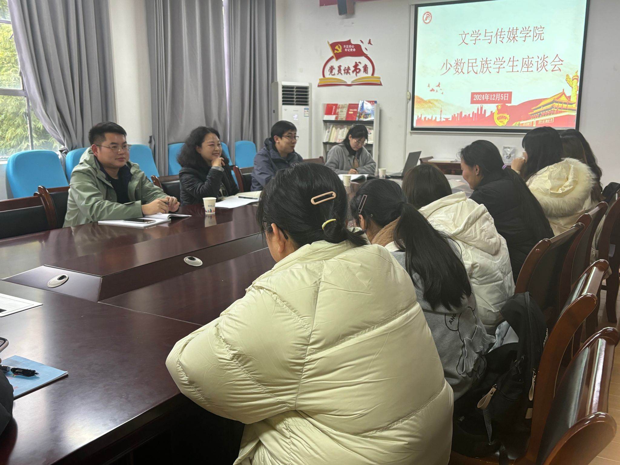 座谈会在轻松融洽的氛围中展开,杨海蓉首先表达了对同学们的关心和问候,学院一直高度重视少数民族员工工作,致力于为少数民族员工提供良好的学习和生活环境。她鼓励同学们积极融入校园生活,充分发挥自身的优势和特长,与各民族同学共同进步。曹刚就专业课学习与同学们进行交流,少数民族同学在文化背景和学习习惯上的不同,并不影响追求知识的脚步,学院将为少数民族员工提供更多的学习支持和帮助,希望同学们能够珍惜大学时光,努力学习专业知识,提升自己的综合素质。