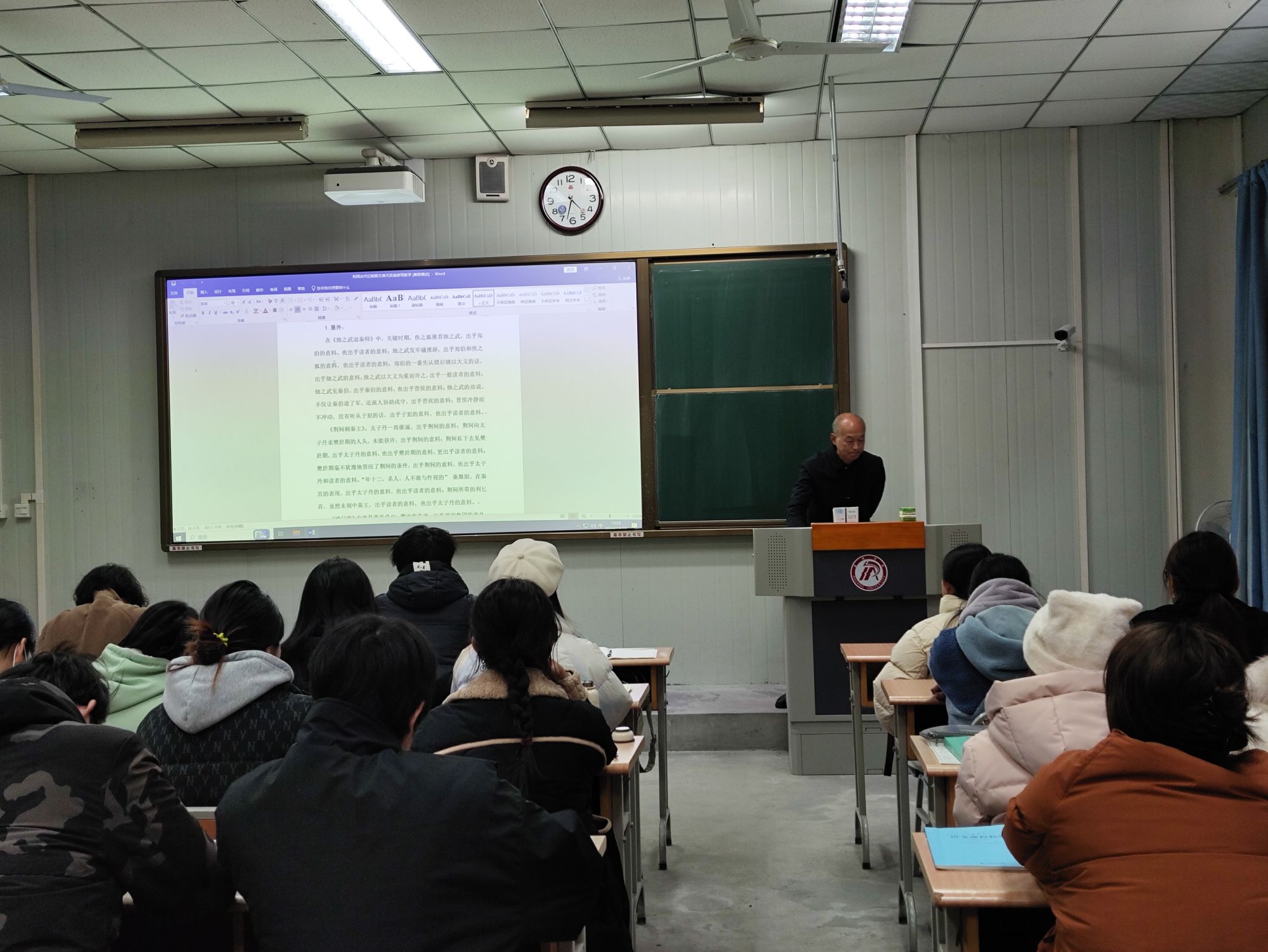 导航痕迹 首页 > 新闻通知 > 公司新闻 > 正文 公司新闻 通知公告 中学语文特级教师程时进应邀为公司师范生做讲座 来源:太阳成tyc122cc集团太阳成tyc122cc集团 发布日期:2024年12月23日 阅读次数: 2024年12月19日下午,汉滨高级中学语文特级教师程时进老师应邀为公司师范生做了“古诗文教学中的文章、文学和文化价值”学术讲座,太阳成tyc122cc集团100余名师范生聆听了本次讲座。 程时进老师首先强调了古诗文教学在中学语文课程教学中的重要地位,他从古诗文有助于传承和弘扬中华优秀传统文化、有助于引导员工树立正确的价值观、有助于提升员工人文素养等方面展开分析,结合《烛之武退秦师》《荆轲刺秦王》《鸿门宴》等中学语文课文案例分析,深入讲解了文言文作品的叙事艺术、结构艺术、叙述特色等内容;同时结合《孔雀东南飞》《梦游天姥吟留别》《窦娥冤》等中学语文古诗文分析,讲解了文言文文学价值层面的知识,分析了其中的所蕴含的文化价值。 本次讲座在热烈的掌声中圆满落幕。同学们纷纷表示,通过本次讲座,他们对文言文教学的文学、文化价值有了更深刻的认识,对在中学语文教学中如何实现古诗文教学的文学、文化价值有了更明确的方向。 撰稿/马旌源(员工) 摄影/刘洋(员工) 审核/朱云、周海霞 发布/崔瑜