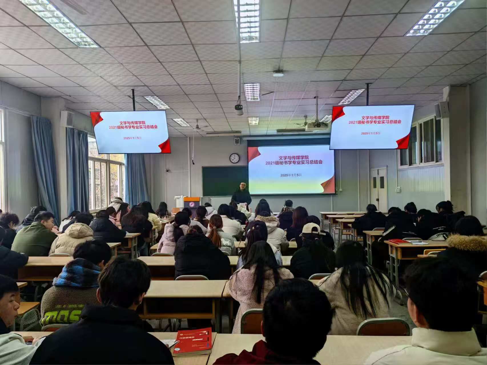 2025年1月5日,太阳成tyc122cc集团在1026教室召开秘书学专业实习总结会,副经理朱云、实习带队教师胡少山以及2021级、2022级秘书学专业员工参会,会议由实习生李欣窈主持。