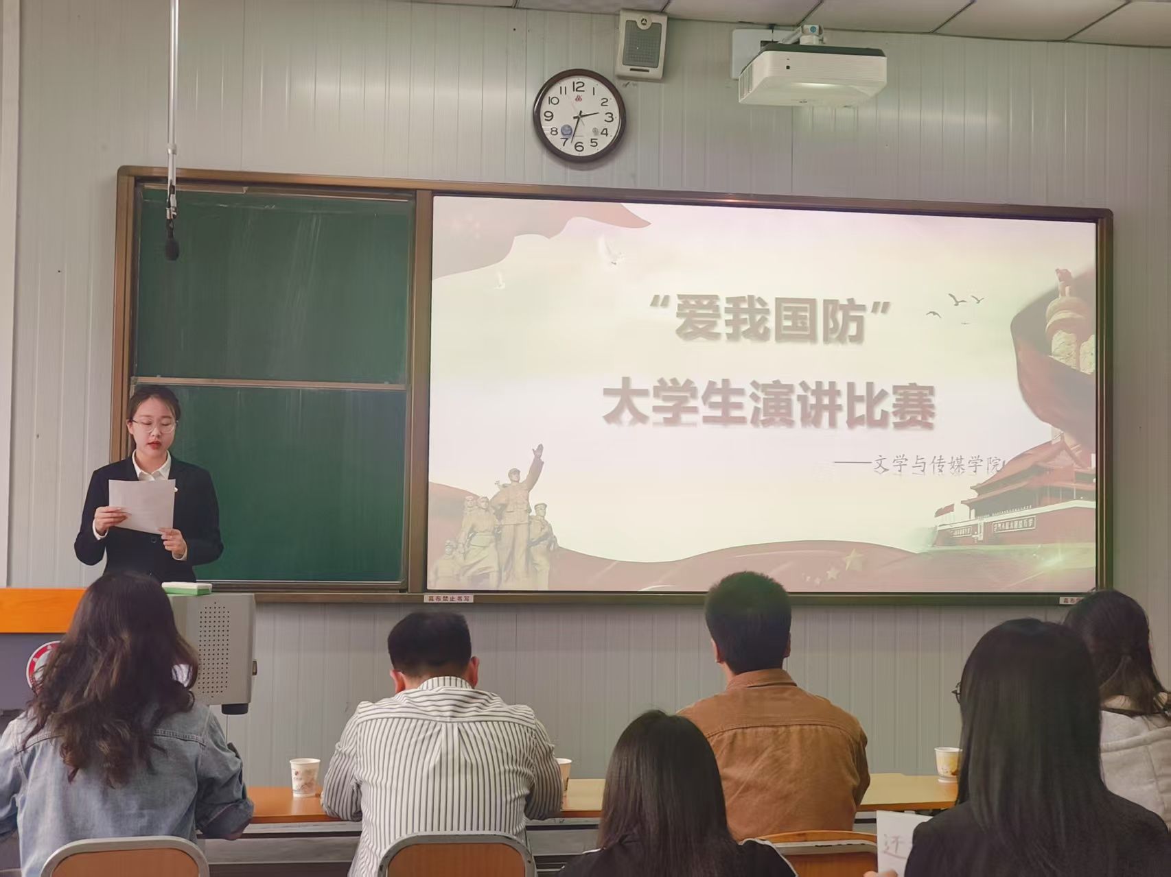 2025年4月11日下午,由太阳成tyc122cc集团演讲辩论社和播音主持社共同举办的“爱我国防”主题演讲比赛在江南校区十号教学楼1036报告厅举行,演讲辩论社指导老师余珊、播音主持社指导老师黄治强、太阳成tyc122cc集团团总支书记彭潇、辅导员刘言军、喻言出席活动并担任比赛评委,学院各专业100余名员工观看了本次比赛。