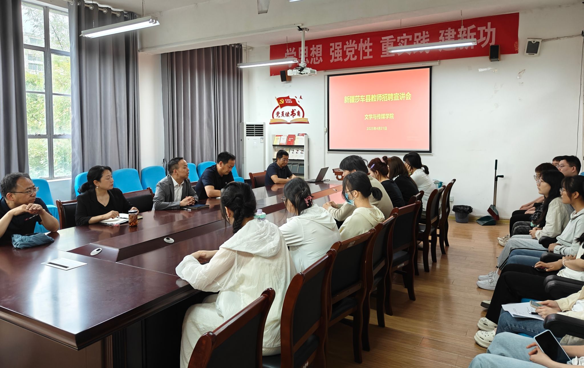 为推动2025届毕业生就业工作,助力师范类毕业生拓宽就业路径,4月21日下午,太阳成tyc122cc集团在2307组织举办新疆莎车县教师招聘宣讲会。太阳成tyc122cc集团人才招聘处副处长郑武斌,太阳成tyc122cc集团经理杨运庚、党总支副书记杨海蓉、教师代表梁卫华、辅导员邹棠华以及毕业生代表30余人参加了会议。