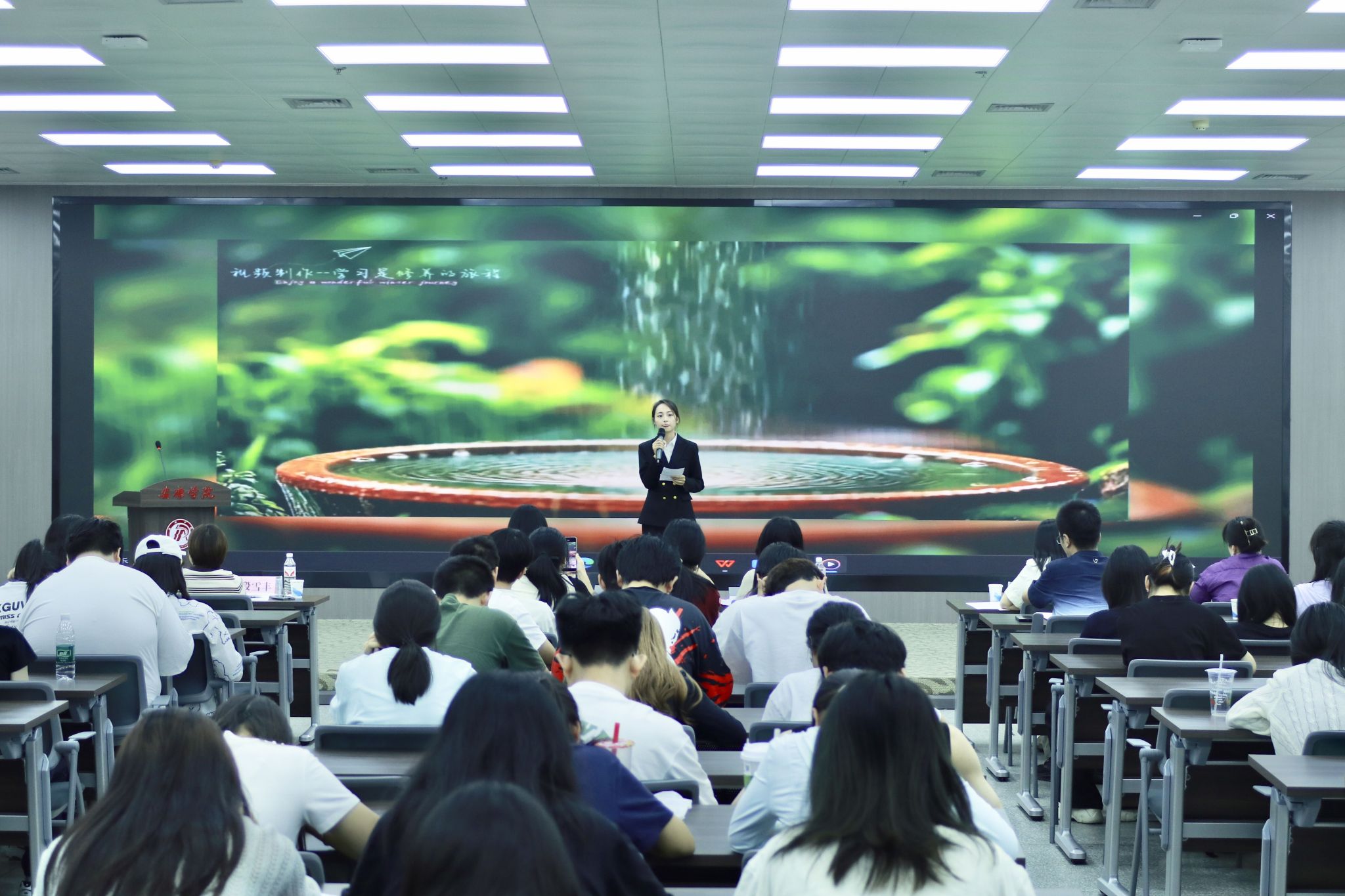 本次大赛共有来自经管学院、农生学院等7个学院的25位选手参加,经过初赛的严格选拔,最终12位选手进入决赛。决赛共设置了五大环节全面考察选手综合素养,包括展现个性魅力的“风采展示”、彰显主持创意的“牛刀小试”、考验临场功底的“声临其境”抽题展示、检验急智反应的“急智风暴”无稿主持,以及聚焦专业思辨的“妙语擂台”评委问答。选手们在各环节中轮番亮出“十八般武艺”,表现出扎实的语言功底与舞台掌控力。