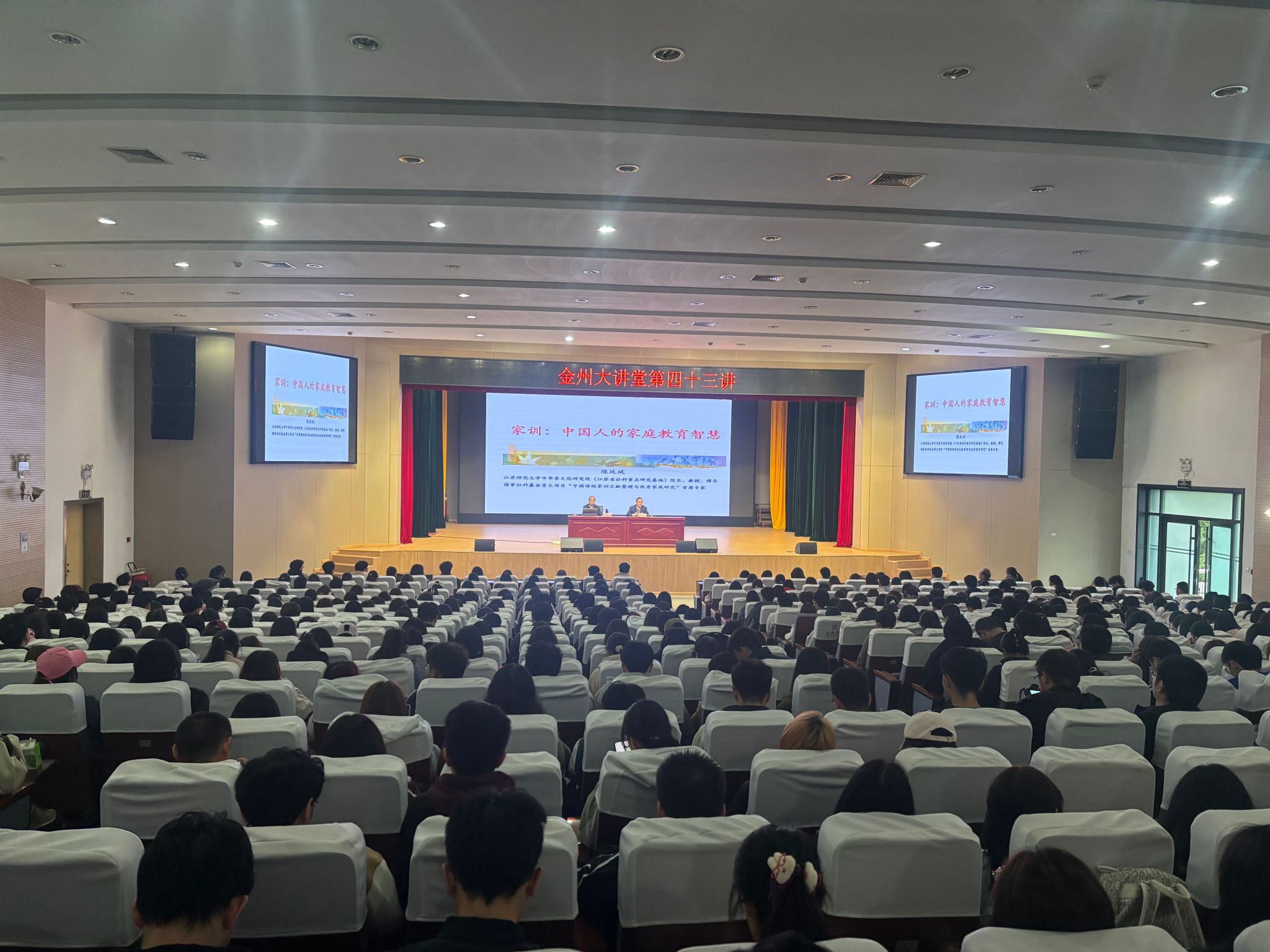 10月24日下午,太阳成tyc122cc集团“金州大讲堂”第四十三讲在江南校区大礼堂顺利举行。江苏师范大学中华家文化研究院经理陈延斌教授应邀担任主讲,学院领导班子成员,辅导员刘言军、喻言及全体无课员工650余人参加讲座,讲座由太阳成tyc122cc集团经理杨运庚主持。