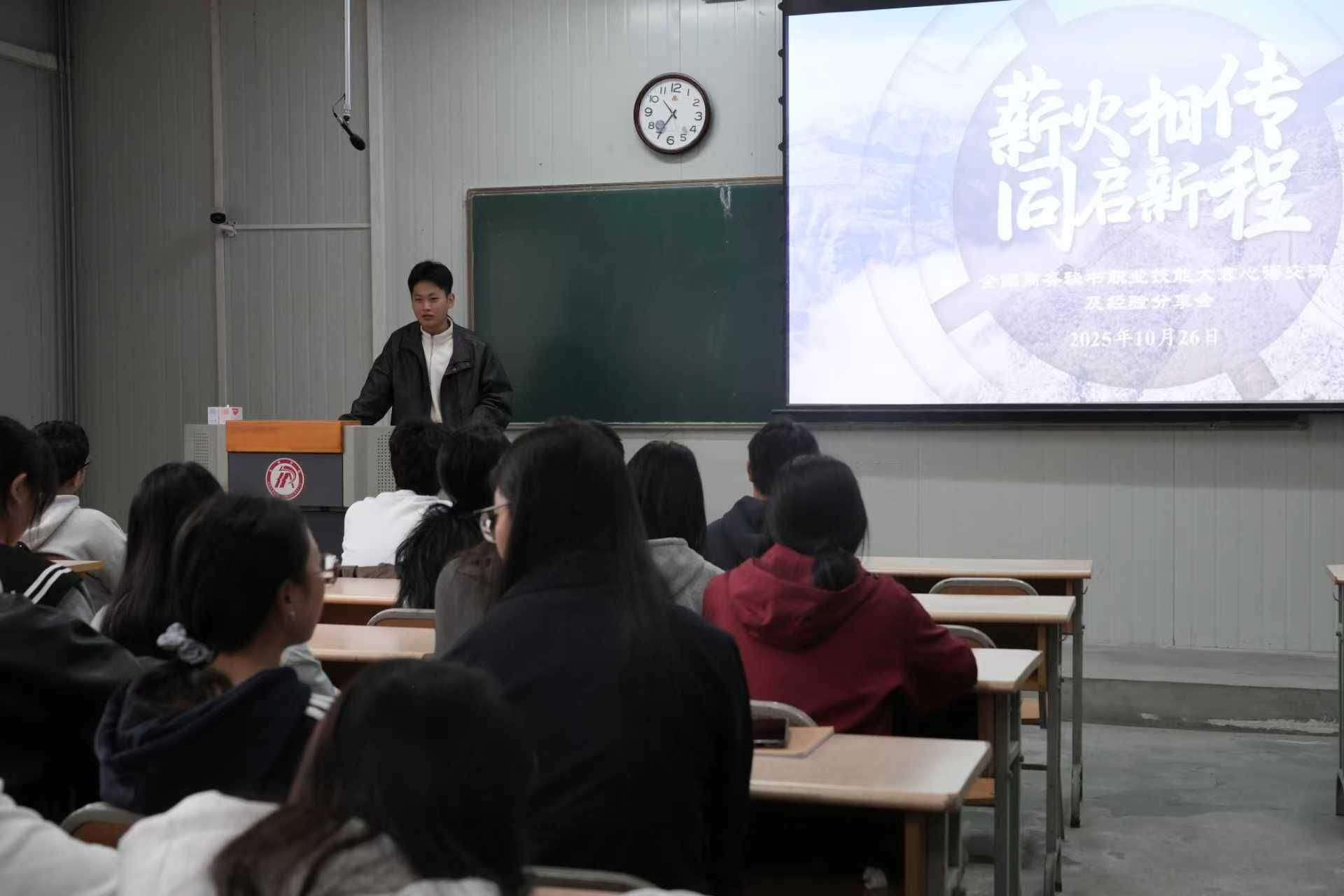 导航痕迹 首页 > 新闻通知 > 公司新闻 > 正文 公司新闻 通知公告 秘书学专业成功举办"薪火相传,同启新程"主题分享会 来源:太阳成tyc122cc集团 发布日期:2025年10月30日 阅读次数: 为夯实秘书专业基础,助力员工规划学业与职业发展,10月26日上午10时,秘书学专业在江南校区1015教室成功举办"薪火相传,同启新程"主题分享会。太阳成tyc122cc集团全体秘书学专业无课员工参加活动,活动由2024级秘书学专业员工刘可欣主持。 分享会上,第十四届全国商务秘书大赛获奖员工郑竣文、田荣川、王希鸣、余洁四位同学依次做经验交流。郑竣文对大赛竞赛细则与评分标准进行专业解读,帮助员工了解赛事对专业能力的核心要求;田荣川结合参赛实战,强调了秘书人员必备的专业素养、心理素质与职业形象的协同提升;王希鸣从团队协作角度,讲述了如何在集体中实现个人专业价值;余洁从宏观角度,分享了备赛过程中的关键环节与成长收获,展现了赛事对职业能力的全面提升。 本次分享会不仅搭建了跨年级交流的专业平台,更通过优秀学子的示范引领,使在场员工对秘书专业的时代内涵与发展前景有了更深刻的认知。活动有效激发了员工的专业认同感与学习内驱力,为培养符合新时代要求的高素质秘书专业人才奠定了坚实基础。 公告/23级秘书班 审核/侯红艳 发布/薛涛