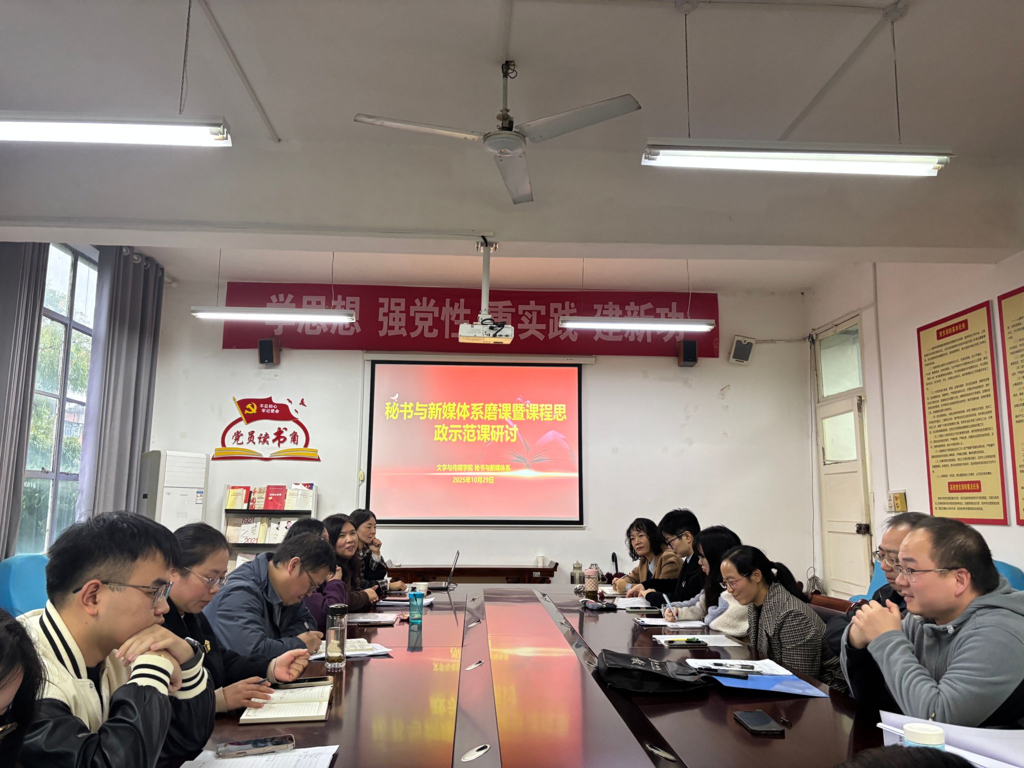 为进一步提升学院教师教学水平,深入推动与促进教师间的学习与合作,同时配合做好公司产品审核评估回头看专家进校考察准备工作,2025年10月29日,秘书与新媒体系举办了磨课暨课程思政示范课研讨活动。本次活动由秘书与新媒体系主任邸玲负责组织实施,崔瑜老师进行示范课教学,学院领导、校院教学督导、各系主任以及其他无课教师参加了活动。