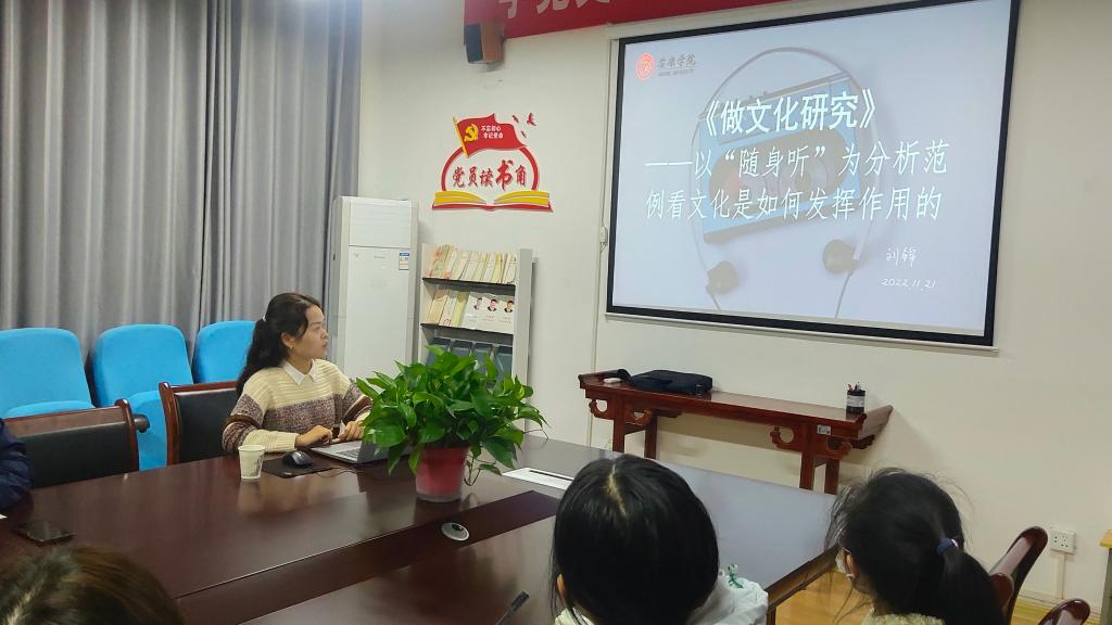 主讲人刘锦围绕“用‘文化循环’理论认识生活——读《做文化化研究》”报告主题,结合《做文化研究》中的索尼随身听案例,从“文化循环”理论的表征、认同、生产、消费和规则五个过程,阐释了文化实践和文化习俗在我们生活中发挥重要作用的原因和方式。随后,全体与会教师立足个人研究方向,从消费文化、媒介传播、企业文化建设、元宇宙技术等多个角度进行了讨论和点评。