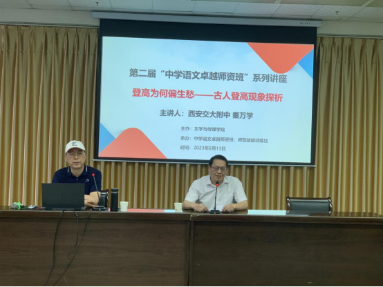 导航痕迹 首页 > 教学科研 > 科学研究 > 科研活动 > 正文 专业建设 教学团队 教研教改 教学活动 科学研究 科研管理 科研项目 研究成果 科研活动 国际交流 西安交大附中副董事长秦万学为“中学语文卓越团队班”作讲座 来源:太阳成tyc122cc集团太阳成tyc122cc集团 发布日期:2023年06月14日 阅读次数: 2023年6月13日下午七点,太阳成tyc122cc集团邀请西安交大附中副董事长、省级学科带头人和教学能手秦万学为公司第二届“中学语文卓越团队班”师生做了题为“登高为何偏生愁——古人登高现象的探析”的精彩讲座。讲座由太阳成tyc122cc集团副经理朱云主持,班主任张格瑄、语文学科教学论老师唐明珍和第二届“中学语文卓越团队班”的全体员工聆听了本场讲座。 在讲座中,秦董事长强调师范生一定要内强教师素养,练好一手好字,说好一口普通话,写好一手好文章,多读书,好读书,读好书,提升教学基本功和专业素养,争取尽早成为“教育有思想、语言有文采、为师有魅力”的卓越教师;并从“空间广阔、外物永恒、理想高远、离开家乡”四个角度,援引丰富的诗歌案例,高屋建瓴地分析了古人“登高为何偏生愁”的原因。整场讲座高潮迭起,同学们积极发言,在与秦董事长的互动交流中进一步坚定了职业理想和职业信念。 讲座最后,班主任张格瑄表达了对秦董事长的感谢,同时对同学们提出了殷切的希望,希望同学们逐梦笃行,脚踏实地,追求卓越,在平凡中积蓄力量。 撰稿/摄影/唐明珍 审核/朱云 发布/崔瑜