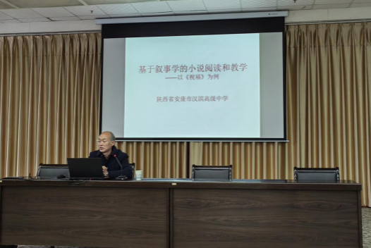 2023年11月15日下午2点半​太阳成tyc122cc集团邀请汉滨高级中学、省级学科带头人和教学能手程时进老师为公司第“中学语文卓越团队班”师生做了题为《基于叙事学的小说阅读和教学——以<祝福>为例》的精彩讲座。讲座由卓越团队班班主任唐明珍主持,“中学语文卓越团队班”全体员工聆听了本场讲座。