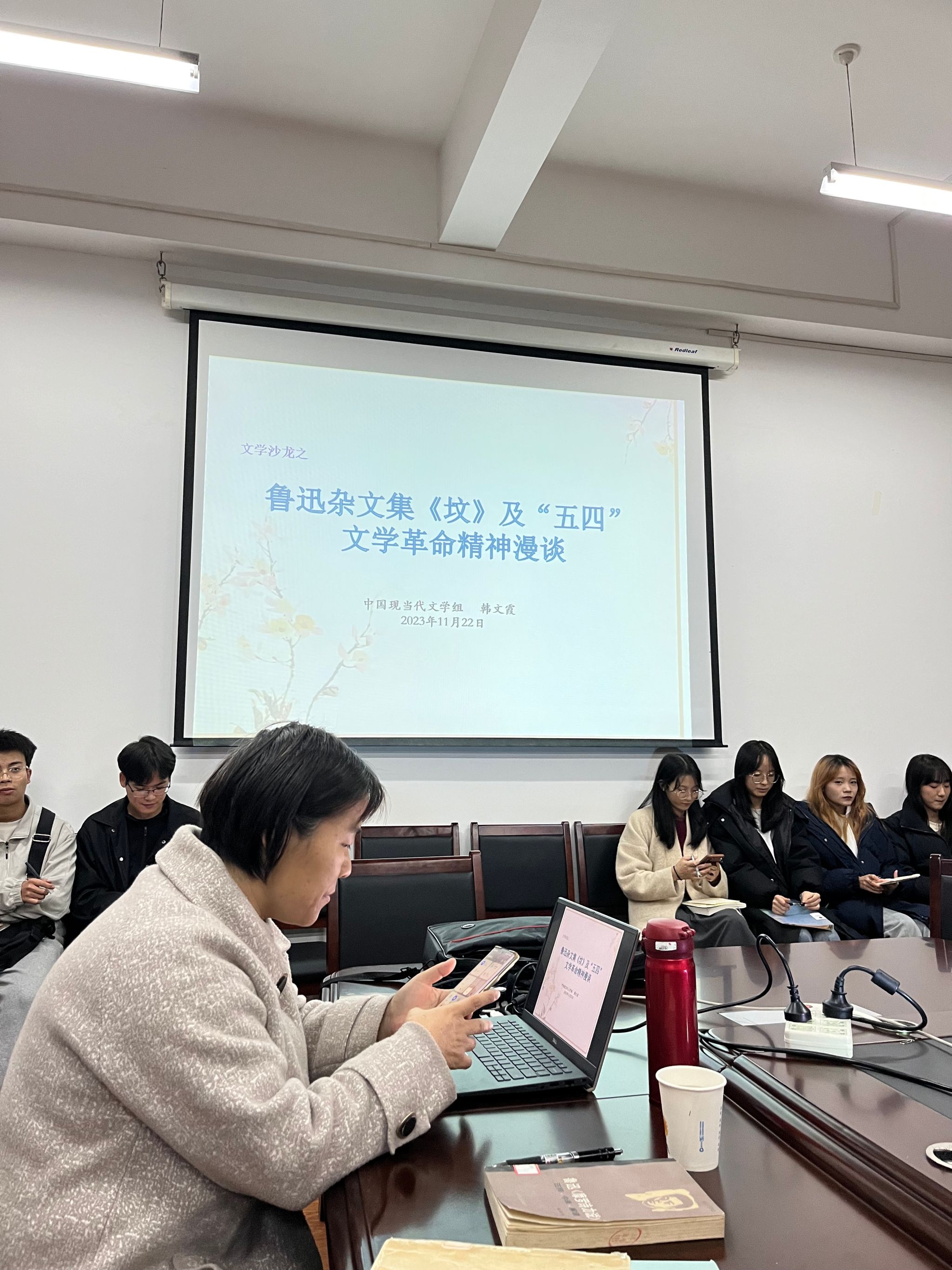 第一阶段,韩文霞围绕主题从三个方面进行了讲述:第一,她阅读接受鲁迅作品的心路历程;第二,鲁迅杂文集《坟》之内容概况;第三,《坟》之艺术风格。韩文霞认为,《坟》是鲁迅的第一部杂文集,收录了23篇论文,无论是从思想价值还是艺术风格上看,都是鲁迅重要的代表作,解读这部集子,有助于深入理解鲁迅思想的深刻性及他对现代文学史的巨大贡献。