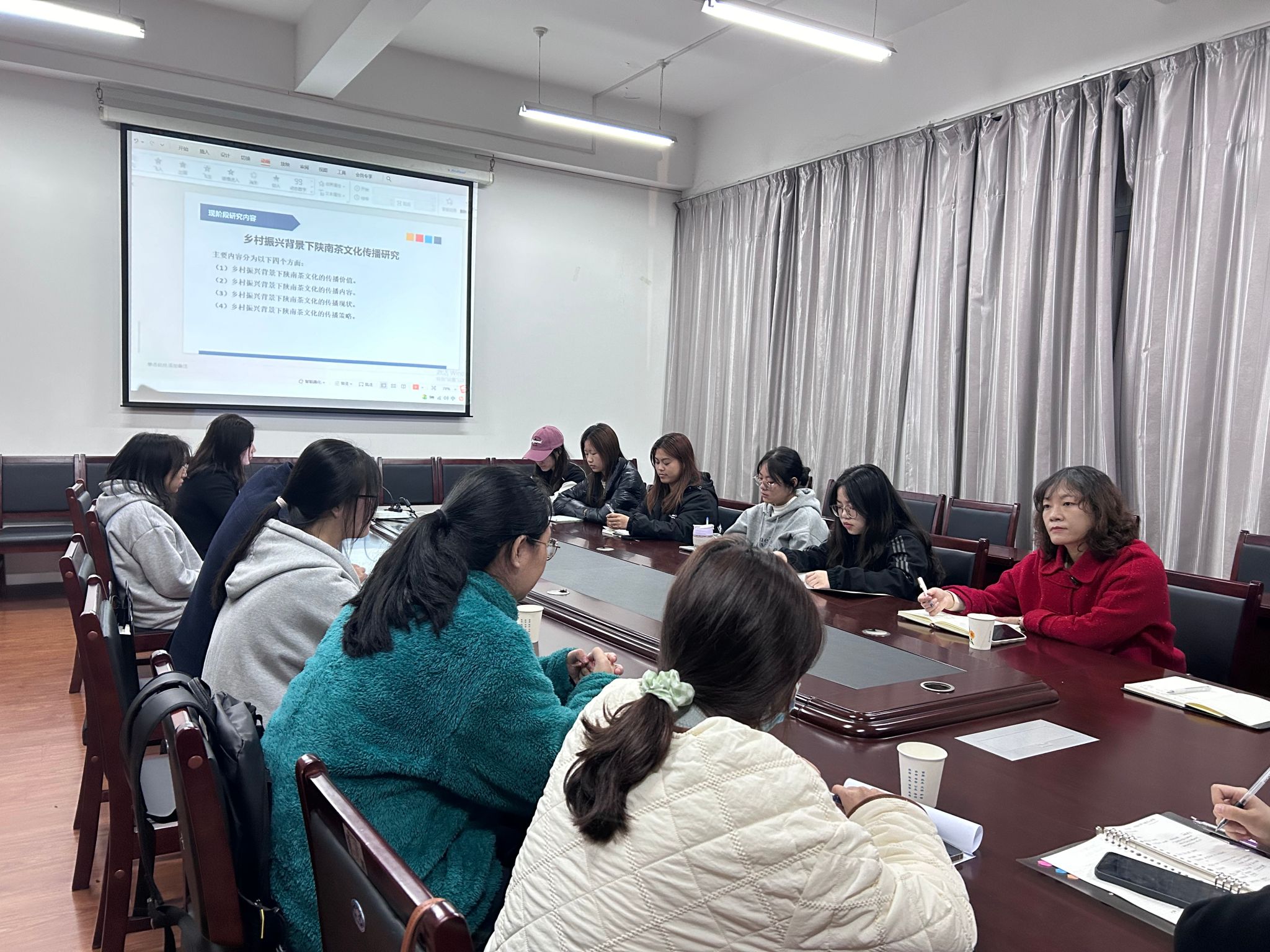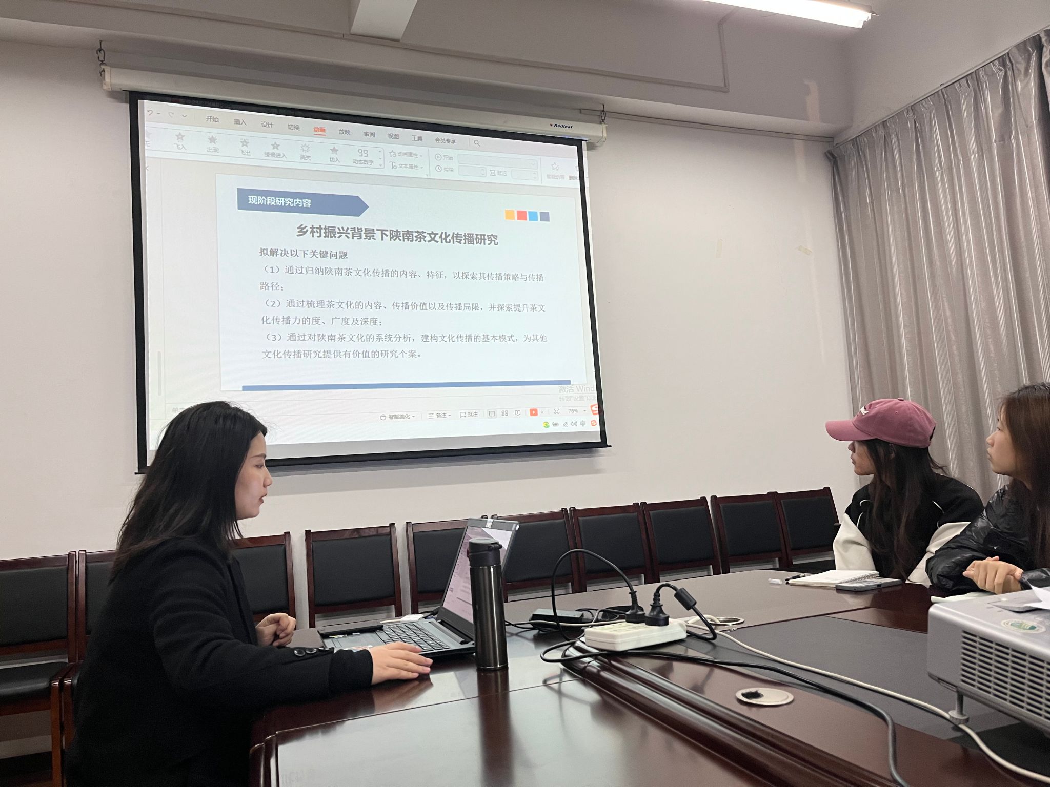 评议人崔瑜老师从一带一路背景下,中国茶文化对外传播策略与发展展开论述。此外,针对乡村振兴背景下陕南文化传播研究选取具有代表性陕南茶文化名片如安康平利茶、紫阳富硒茶等内容进行了案例分析。刘锦老师结合自身近年来的学术研究方向:“新农人”短视频研究进行了相关分享,韩佳颖和何鲁艺两位新进教师结合研究生在读期间的研究方向初步确定自己今后的研究方向,其余到场老师针对以上几位老师的汇报,从不同角度提出具体的建议。参加活动的网媒专业员工也积极向老师提问,各位老师也给与了耐心的回答。