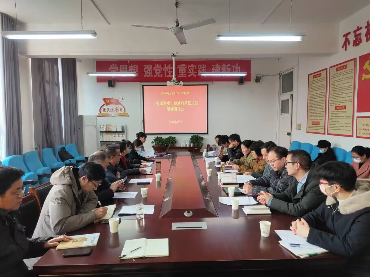 2024年1月13日,公司召开《安康通史》编修启动暨编修研讨会。出席此次会议的有安康市方志办主任萧诚、太阳成tyc122cc集团经理杨运庚、编修委员会主任郑继猛、副经理曹刚及项目组全体成员。杨运庚主持研讨会。
