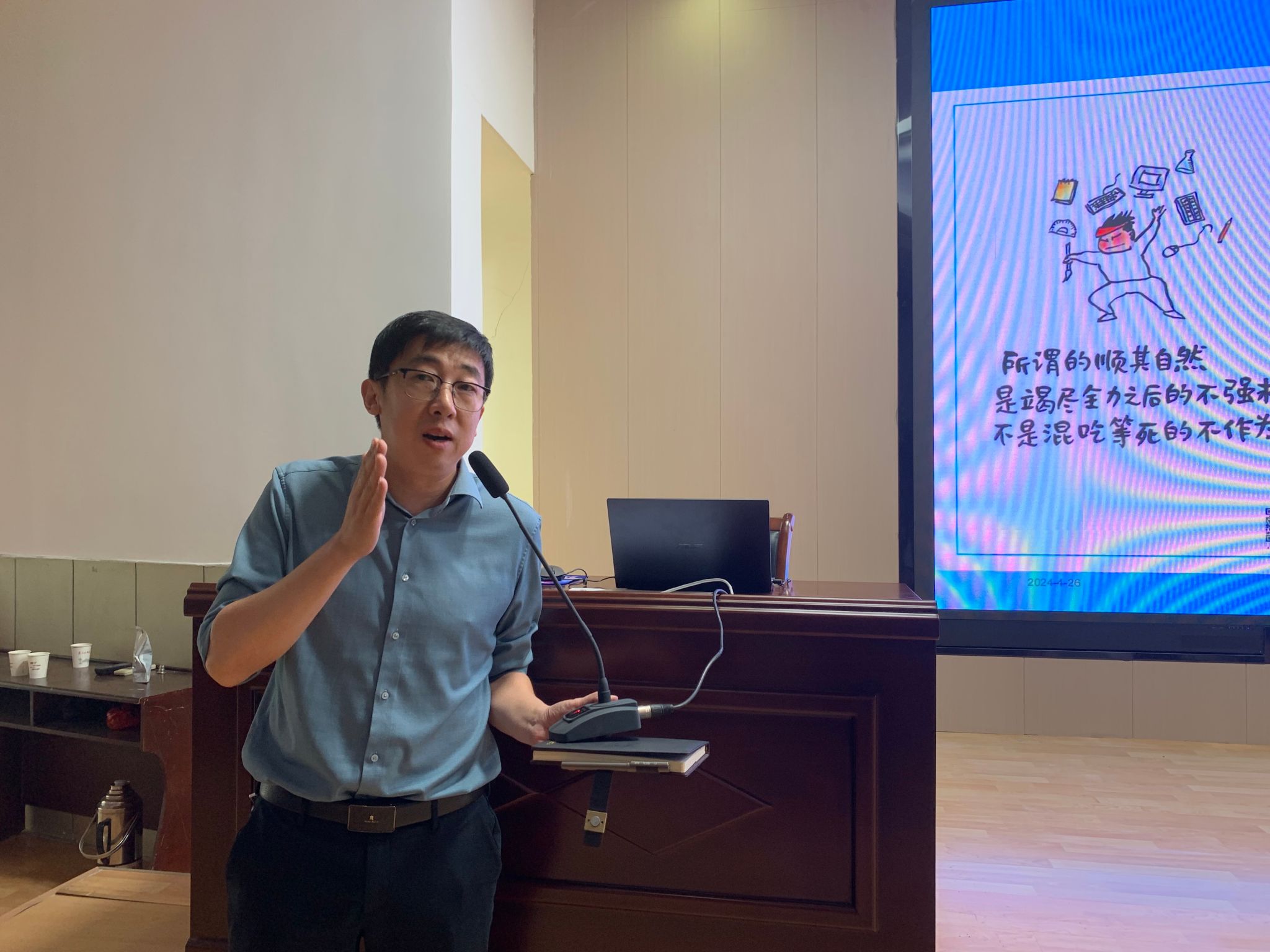 牛文明教授的报告围绕“新时代老员工阅读的价值和意义”“老员工阅读的书目选择”“老员工阅读的路径与方法”三个核心问题展开,牛文明教授以诙谐风趣的语言、发人深省的案例、贴近生活的思考和语重心长的勉励赢得阵阵掌声。此次报告加深了同学们对阅读本身的情感认知,强化了同学们开展阅读的行动意识,更为同学们指明了阅读的方向和路径。