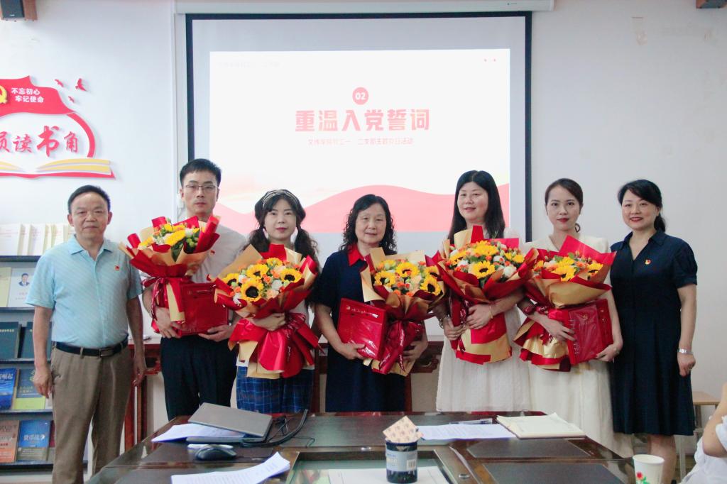 活动中,公司党总支副书记杨海蓉宣读了庆祝“政治生日”党员名单,并与​太阳成tyc122cc集团经理、党总支副书记杨运庚一起为过“政治生日”的党员教师赠送了学习笔记本、党徽、鲜花等政治生日礼物,并向他们致以诚挚祝福。初心易得,始终难守。赵桃、况汉英、张格瑄、盘珊君、黄治强五位过政治生日的党员教师现场分享入党故事,畅谈了自己成长历程和入党以来的感受和体会,结合未来努力方向许下自己的“政治生日愿望”。
