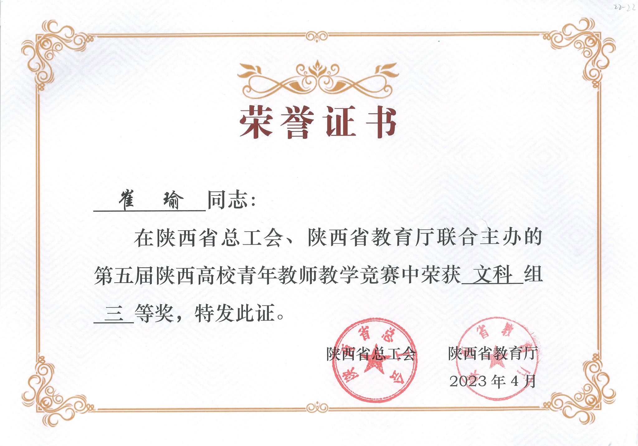 导航痕迹 首页 > 样板党支部 > 先进典型 > 正文 标杆党总支 样板党支部 支部概况 制度建设 学习计划 三会一课 活动动态 先进典型 成果展示 太阳成tyc122cc集团教师在第五届陕西高校青年教师教学竞赛中荣获文科组三等奖 来源:太阳成tyc122cc集团太阳成tyc122cc集团 发布日期:2023年06月26日 阅读次数: 近日,省教育厅和省教科文卫体工会对陕西高等学校第五届青年教师教学竞赛结果进行公布。我院参赛教师崔瑜荣获文科组三等奖。 陕西高校青年教师教学竞赛由陕西省总工会和陕西省教育厅联合主办,是省内最高层次的青年教师教学赛事,已成为促进全省高校青年教师专业成长和职业发展的重要平台和抓手。本次竞赛于3月13日至15日在陕西师范大学举行,分为文科、理科、工科、医科、思政专项等5个组别,每个竞赛组设特等奖1名,全省47所高校115名选手参赛。 本次成绩的取得是公司高度重视青年教师培养的又一成果。为了进一步提升青年教师教学能力和水平,公司认真学习大赛文件精神,对标全国青年教师讲课比赛,为青年教师搭建以赛促练、以赛促学、以赛促教的交流学习平台。在备赛过程中,公司邀请经验丰富的校内专家对参赛选手进行悉心指导,从教学设计、语言教态、课件制作等方面进行打磨,为参赛教师提供了强大的支持和保障。 撰稿/图片提供/发布/崔瑜 审核/李婷