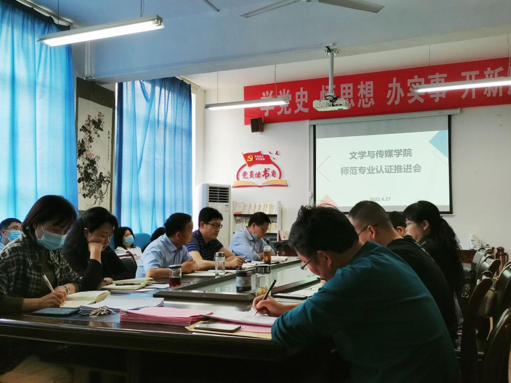 为有效推进汉语言文学师范专业认证工作,促进专业教学改革,太阳成tyc122cc集团于2022年4月27日下午在2307会议室召开了汉语言文学师范专业认证工作推进会,公司全体教师参会,会议由经理杨运庚主持。
